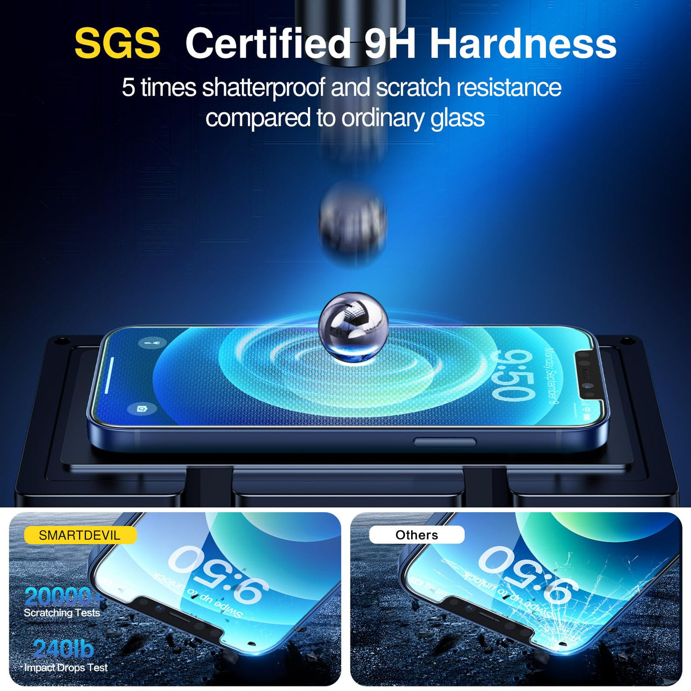 Q: What kind of protection does this screen protector offer?A: The SMARTDEVIL screen protector provides comprehensive protection, having passed 12 rigorous military standard tests, including impacts of up to 220lbs and drops from 8 feet. This ensures top-tier strength, toughness, and durability to keep your iPhone screen in perfect condition.
