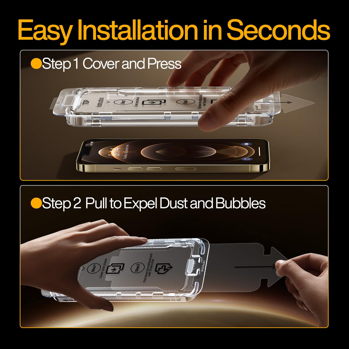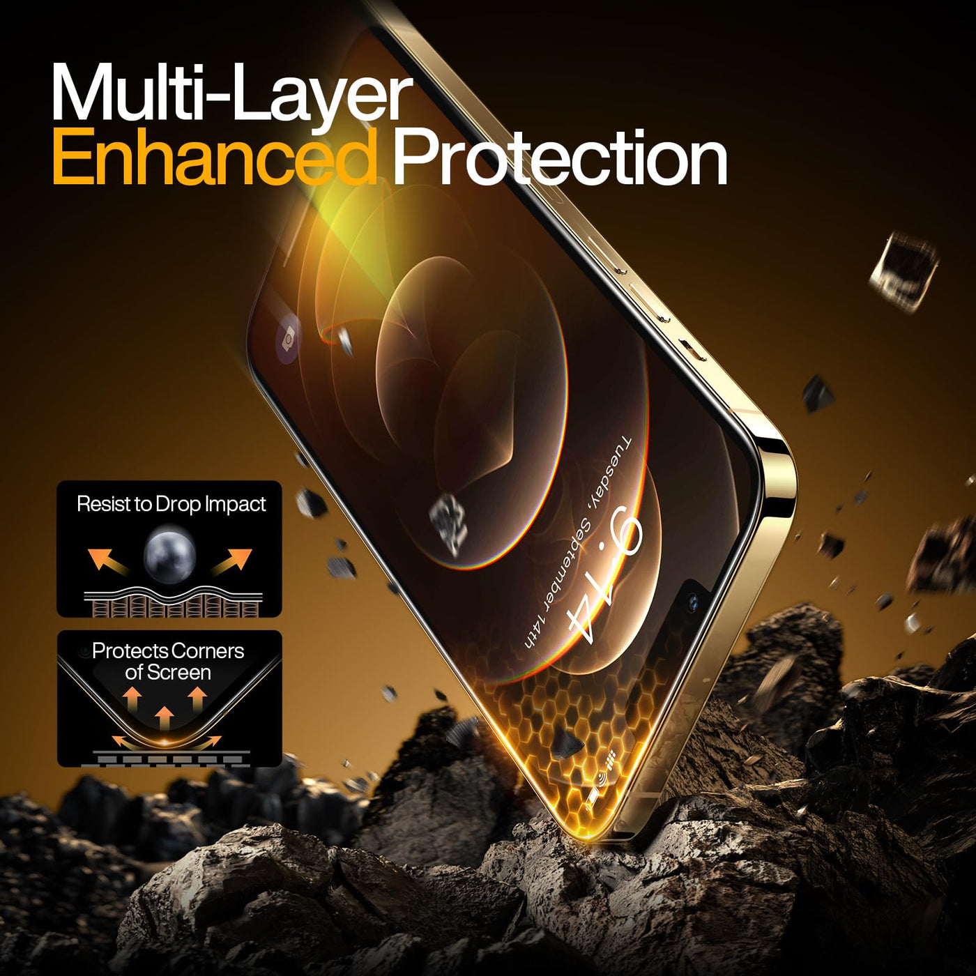 Q: What kind of protection does this screen protector offer?A: This screen protector provides comprehensive protection, having passed International Military Standard tests for impact resistance, drop protection, and scratch tests, ensuring your iPhone screen remains in excellent condition.