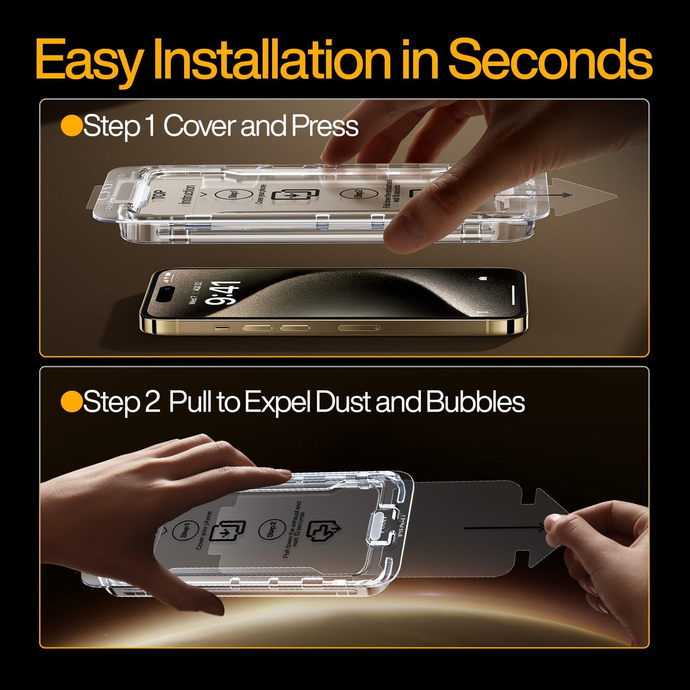 Q: How does the installation process work for the SMARTDEVIL screen protector?A: The installation process is simple and quick thanks to the included SmartDevil alignment kit. You just need to cover and pull to initiate the automatic positioning, which eliminates dust and bubbles, making the setup effortless in seconds.