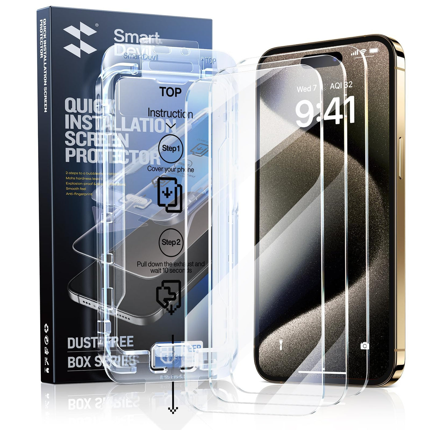Q: What kind of protection does this screen protector offer?A: The SMARTDEVIL screen protector provides comprehensive protection, meeting International Military Standards with 12 rigorous tests, including 220lbs impact resistance and 8ft drop protection. It is designed to keep your iPhone screen in perfect condition against scratches and impacts.
