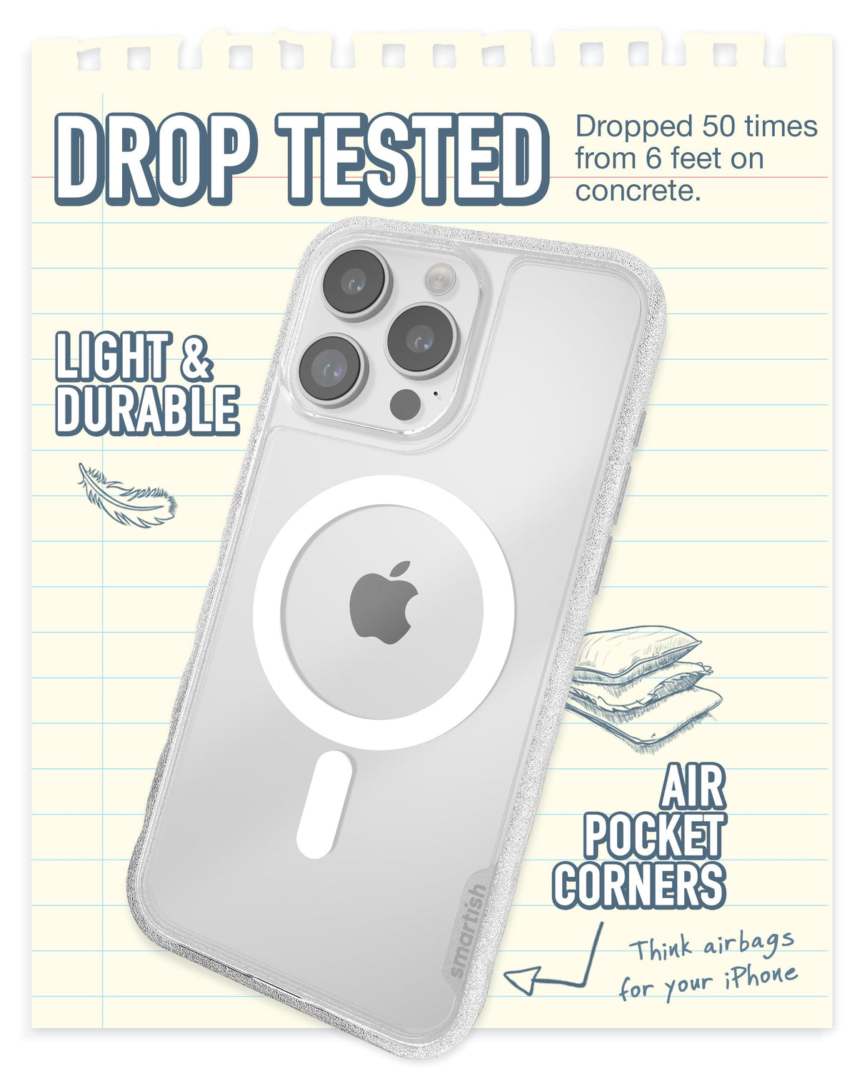 Q: What materials are used in the Smartish Magnetic Case for iPhone 15 Pro Max?A: The Smartish Magnetic Case is made from high-quality acrylic, which offers both lightweight protection and durability, ensuring your phone remains safe without adding unnecessary bulk.
