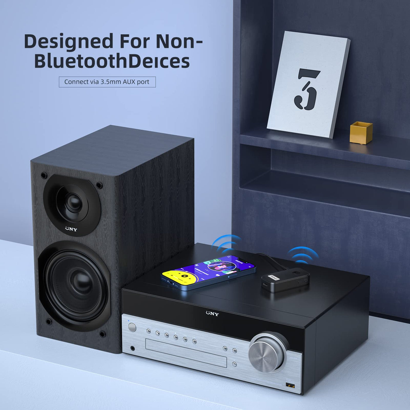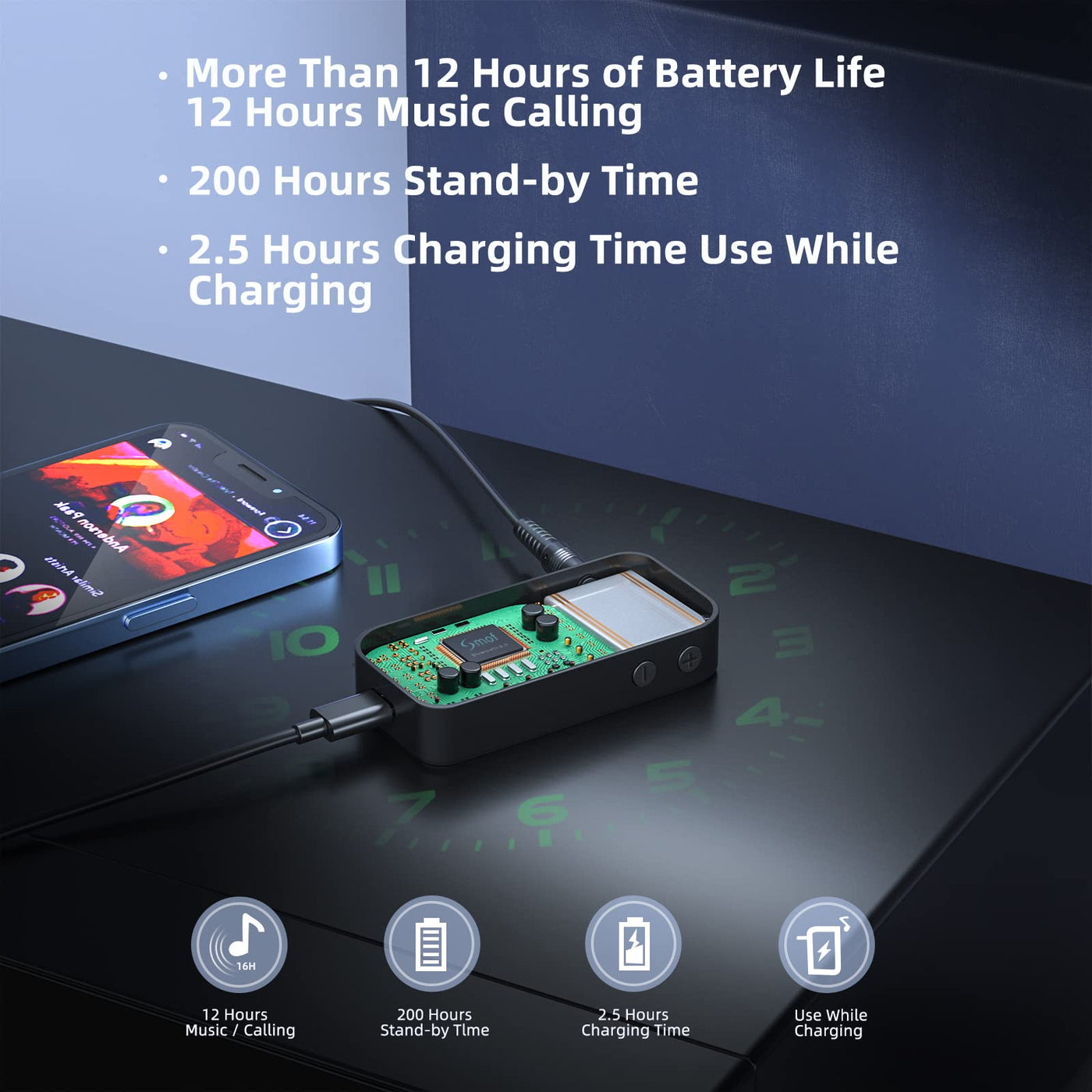 Smof Aux Bluetooth Adapter For Car,Bluetooth 5.0 Receiver/Portable Hands Free Call/Car Stereo Music/Noise Cancelling/Wireless Audio Adapter With Microphone For Home,Black