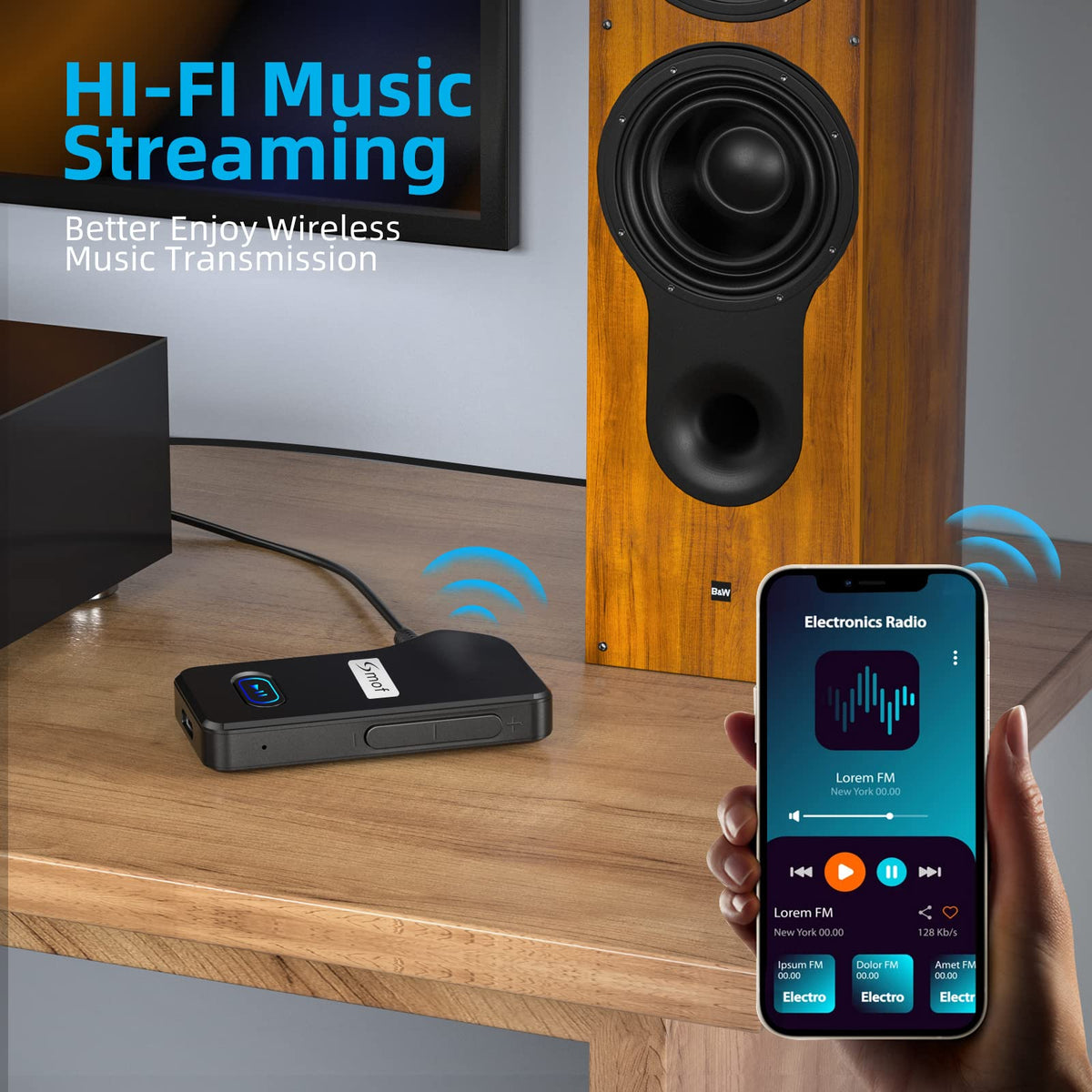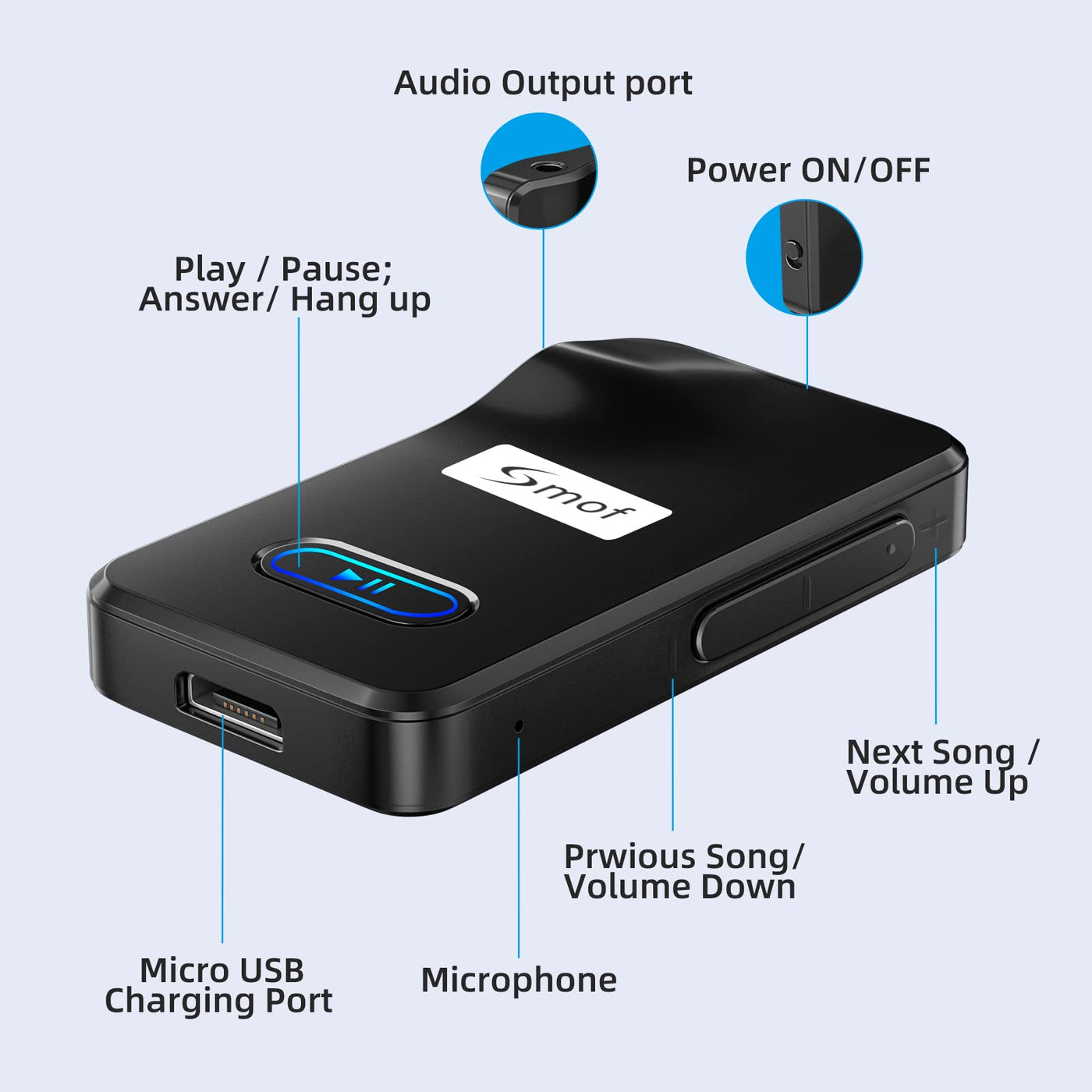 Smof Aux Bluetooth Receiver For Car, Portable 3.5Mm Aux Bluetooth 5.0 Car Adapter, 12 Hour Battery Life, Handsfree Calls, Dual Device Connection, For Car Stereo/Home Stereo/Wired Headphones/Speaker