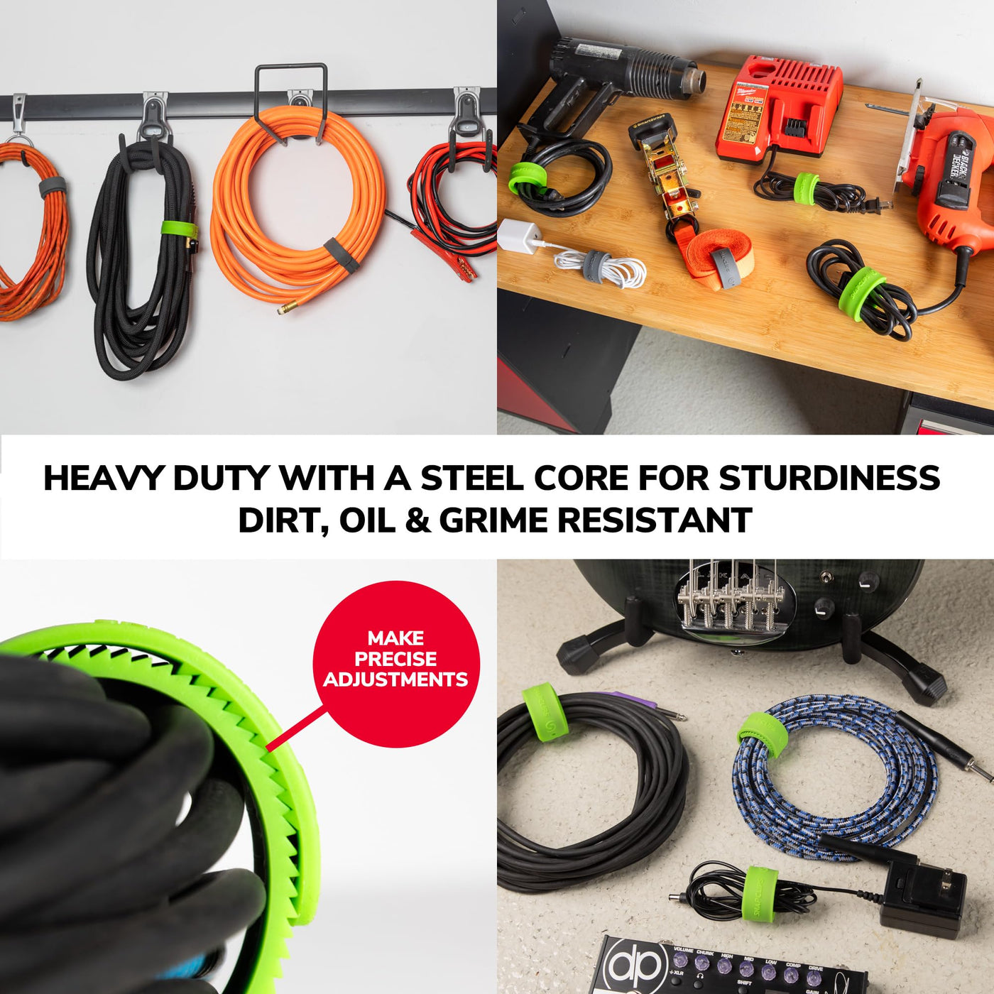 Q: Are SnapClips Storage Straps adjustable in size?A: Yes, these storage straps are adjustable, allowing you to customize the length to fit various sizes of cords and hoses, making them a flexible organizing solution.