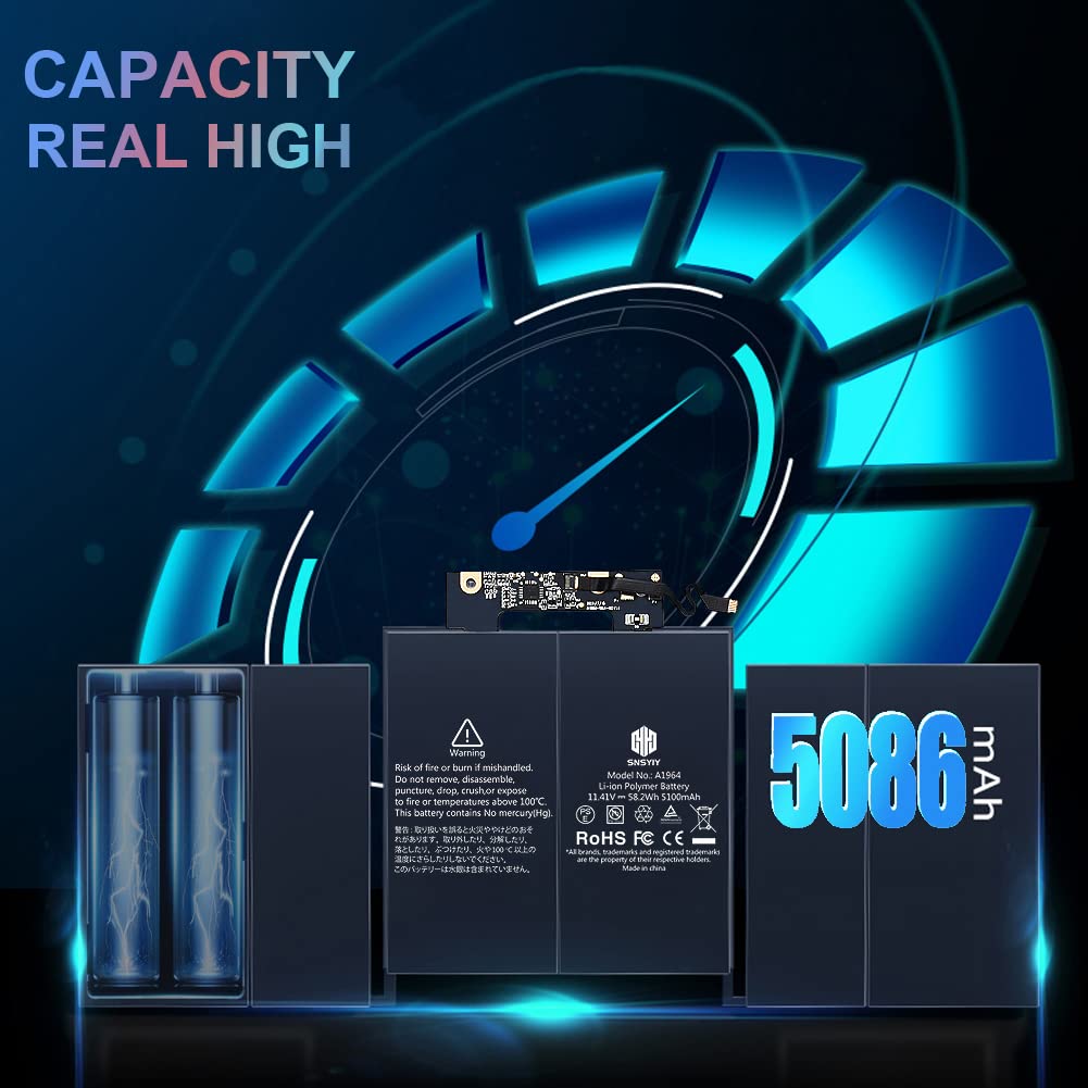 Q: What is the capacity and voltage of the SNSYIY A1989 battery?A: The SNSYIY A1989 battery has a capacity of 5086mAh and operates at a voltage of 11.4V, providing reliable power for your MacBook.