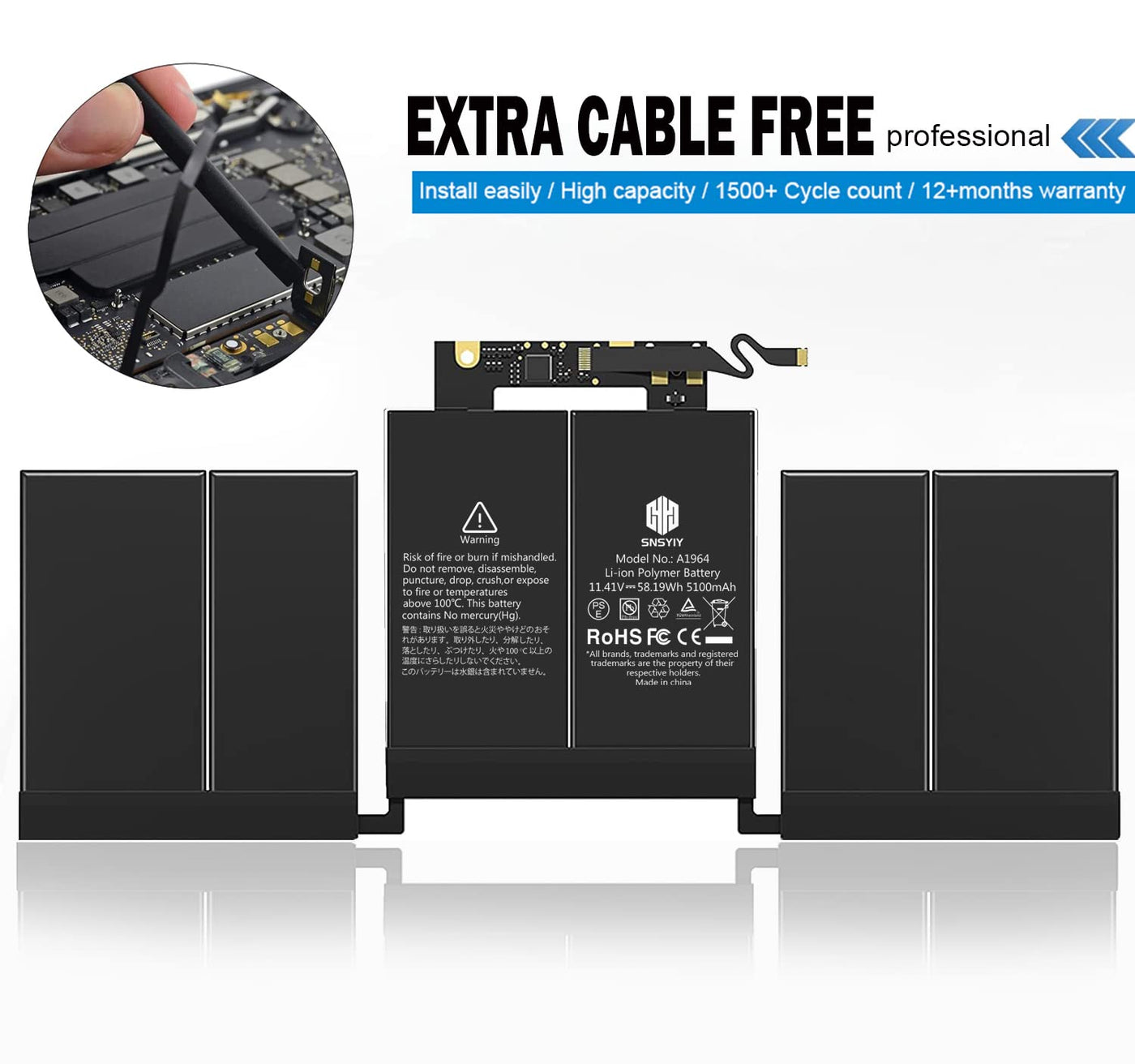 Q: How long does the SNSYIY A1989 battery last after installation?A: With proper usage, the SNSYIY A1989 battery can last up to 1500+ recharge cycles, depending on usage patterns and care, ensuring long-term performance.