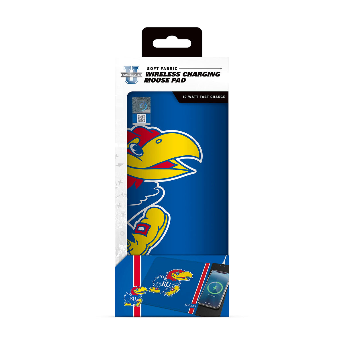 Q: What makes this mouse pad unique?A: This mouse pad not only serves as a functional charging station but also showcases your team's official logo, making it a perfect accessory for Kansas Jayhawks fans.