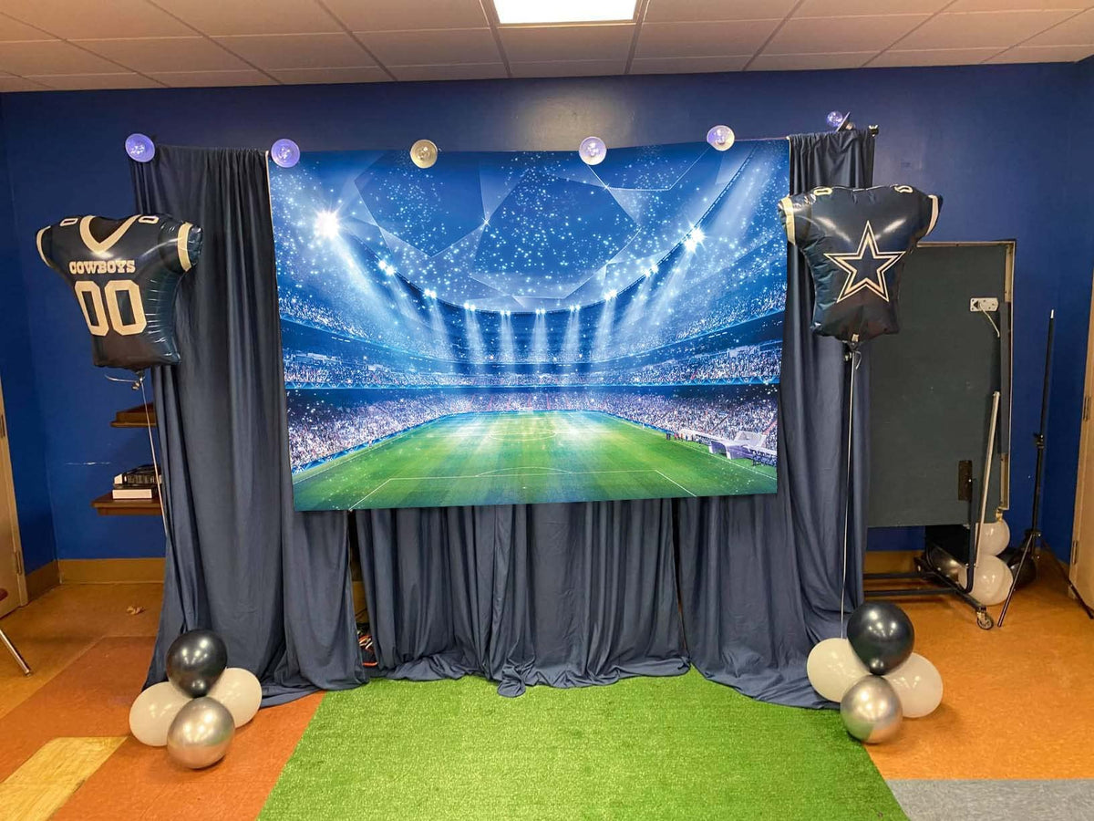 Q: Is the backdrop suitable for outdoor use?A: Yes, the Soccer Field Backdrop is designed to be used for both indoor and outdoor events, such as football matches or birthday parties. Just ensure it is secured properly to withstand outdoor conditions.