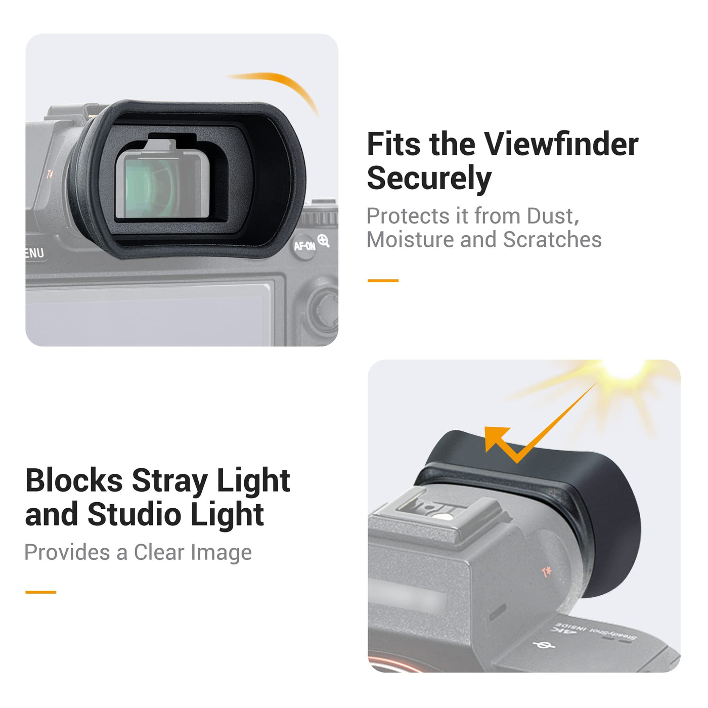 Material: Abs+Silicon Replaces Sony Fdaep18 Fdaep16 Fdaep15 Eyepiece Compatible Cameras: Sony A7 A7M2 A7M3 A7R A7Rm2 A7Rm3 A7Rm4 A7S A7Sm2 A9M2 A9 A58 & A99M2 Note: This Eyepiece Is Not Compatible With Sony A7C A7Siii This Camera Eyecup Is Specially Designed For Sony A7 , A7 Ii , A7 Iii , A7R , A7R Ii , A7R Iii , A7R Iv , A7S, A7S Ii , A9 Ii , A9 , A58 And A99 Mark Ii Cameras. During Shooting, The Eyecup Can Not Only Keep Your Viewfinder Safe From Impact And Scratches But Also Protect The Viewfinder From Dirt, Moisture, Dust, And Unwanted Light, Thus Providing More Image Detail. In Addition, It Allows More Comfortable Viewing When Camera Is Held To Eye, Especially When Wearing Glasses. And It Also Protects Your Glasses From Scratches.