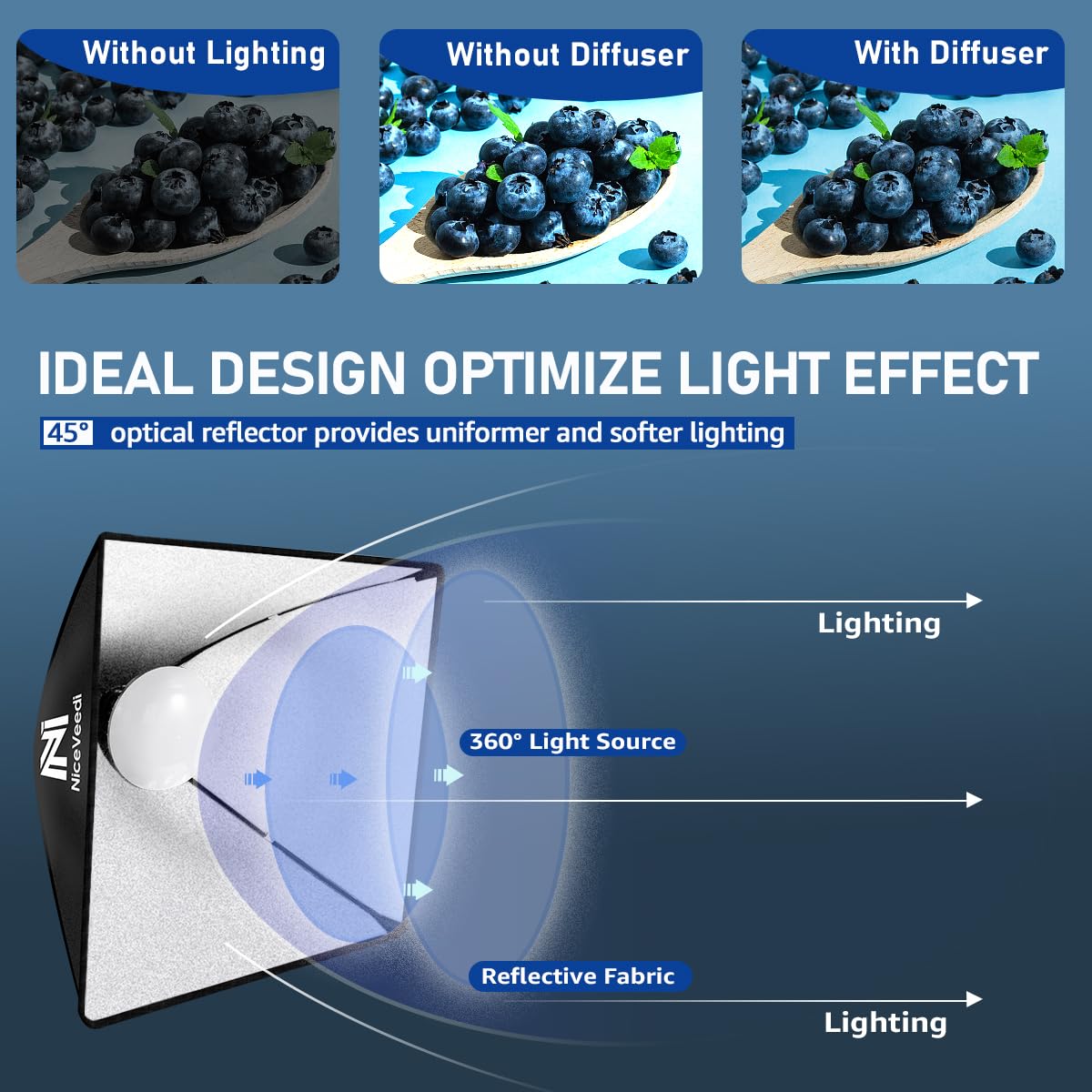 Q: What are the benefits of using the NiceVeedi Softbox Lighting Kit for photography?A: The NiceVeedi Softbox Lighting Kit provides superior brightness with its 50W LED bulbs, offering a softer lighting effect that is easier on the eyes. It's designed for continuous lighting, making it ideal for various photography applications, including portrait and product shooting. Additionally, the anti-strobe feature ensures consistent lighting without flicker, which is essential for high-quality video recording.