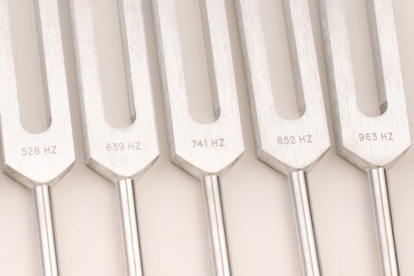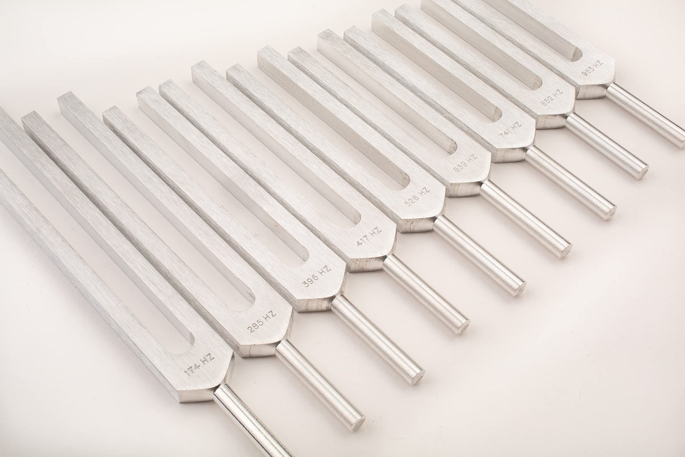 The Frequencies Of Omnivos' Solfeggio Set Are: 174, 285, 396, 417, 528, 639, 741, 852, 963 Hz. This Ancient Scale Is Most Often Used To Assist With Healing Deep Emotional Issues And Creating An Opening For Heightened Levels Of Awareness. ---- All Omnivos Tuning Forks Manufactured In The Usa. To Activate A Tuning Fork Please Use A Hockey Puck Or Tuning Fork Activator. A Mallet Restricts You From Using Several Tuning Forks At The Same Time. Our Professional Grade Aluminum Tuning Forks Are Made Of Impact Resistance Aluminum Making It Approximately 26% Harder And Giving It A Ring Time Up To 20% Longer Than Other Manufacturers. It Has Lower Levels Of Impurities With The Highest Rating For Surface Finish Per The Reynolds Aluminum Engineering Study. As Are Result, Our Material Is More Immune To Corrosion And Pitting. All Of Our Forks Are Tuned To Within .5% Of The Indicated Frequency At 20 Degrees Celsius, 68 Degrees Fahrenheit And Is Subject To At Least Three Inspection Processes To Eliminate Imperfections. Other Manufacturers Tune To As High As 2.5%. Each Tuning Fork Set Comes With A Carry Bag.