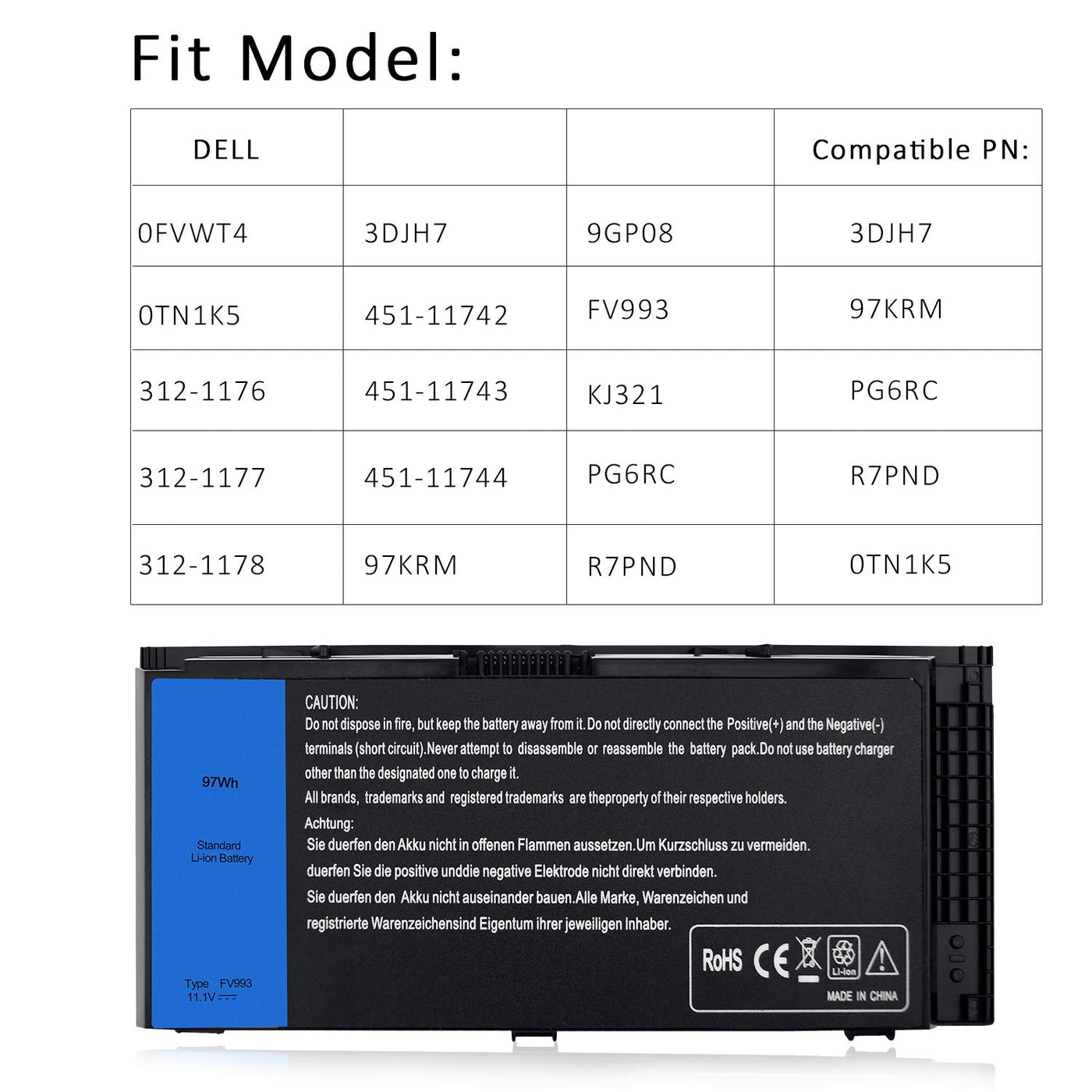 Q: Is the SOLICE New M4800 M6800 FV993 Laptop Battery compatible with my Dell Precision laptop?A: Yes, this battery is compatible with Dell Precision M4600, M4700, M4800, M6600, M6700, and M6800 laptops. Make sure to verify your laptop model against the compatibility list.
