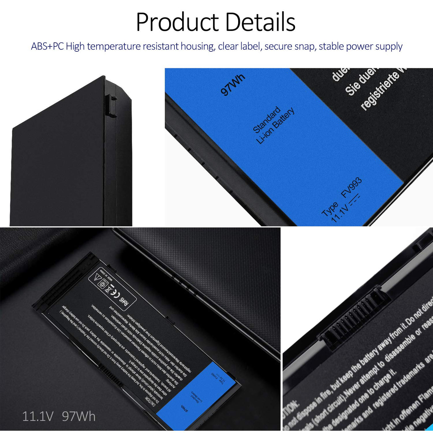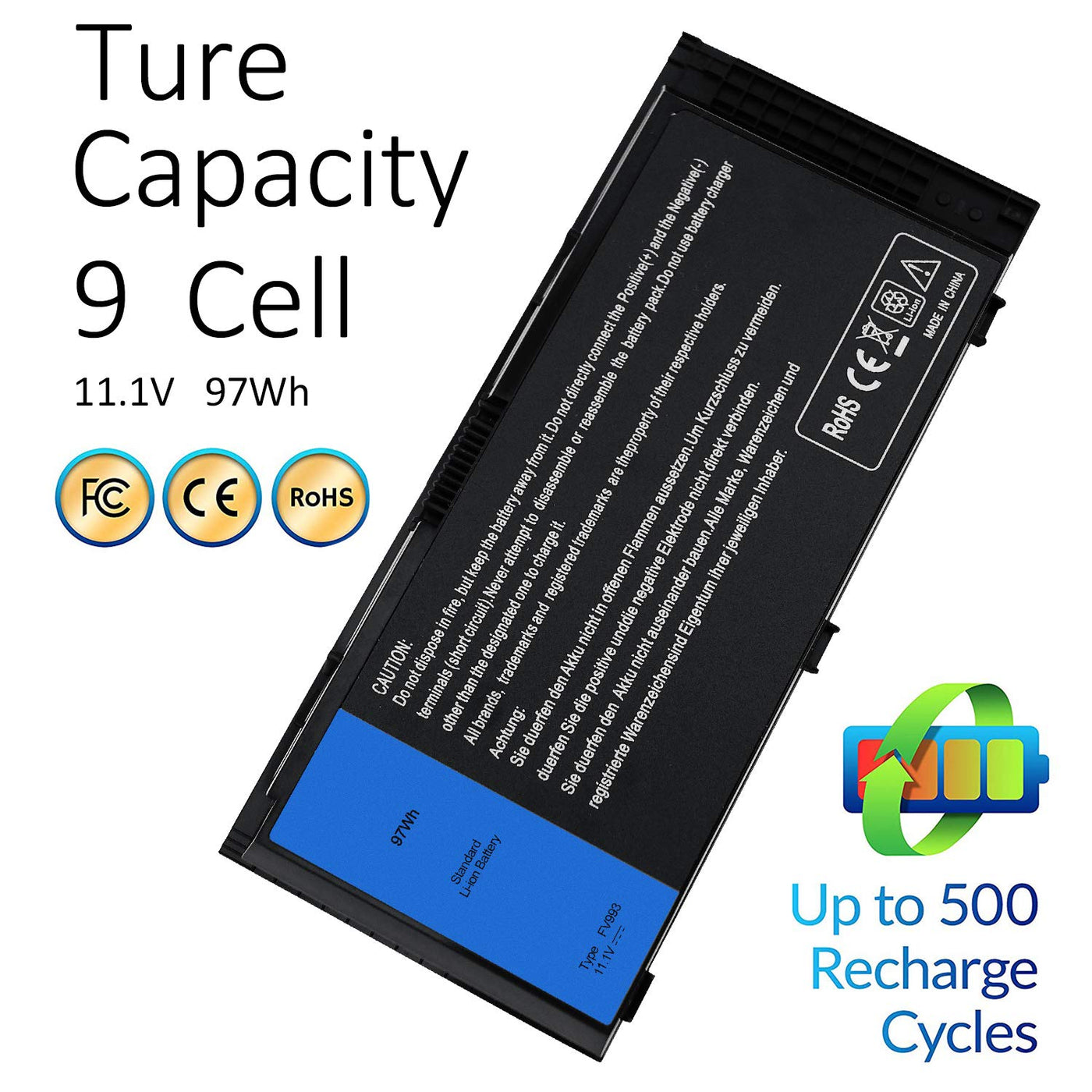 Q: What is the capacity and voltage of the SOLICE laptop battery?A: The SOLICE laptop battery has a capacity of 97 Wh with a voltage of 11.1V. It features a 9-cell design for optimal performance.