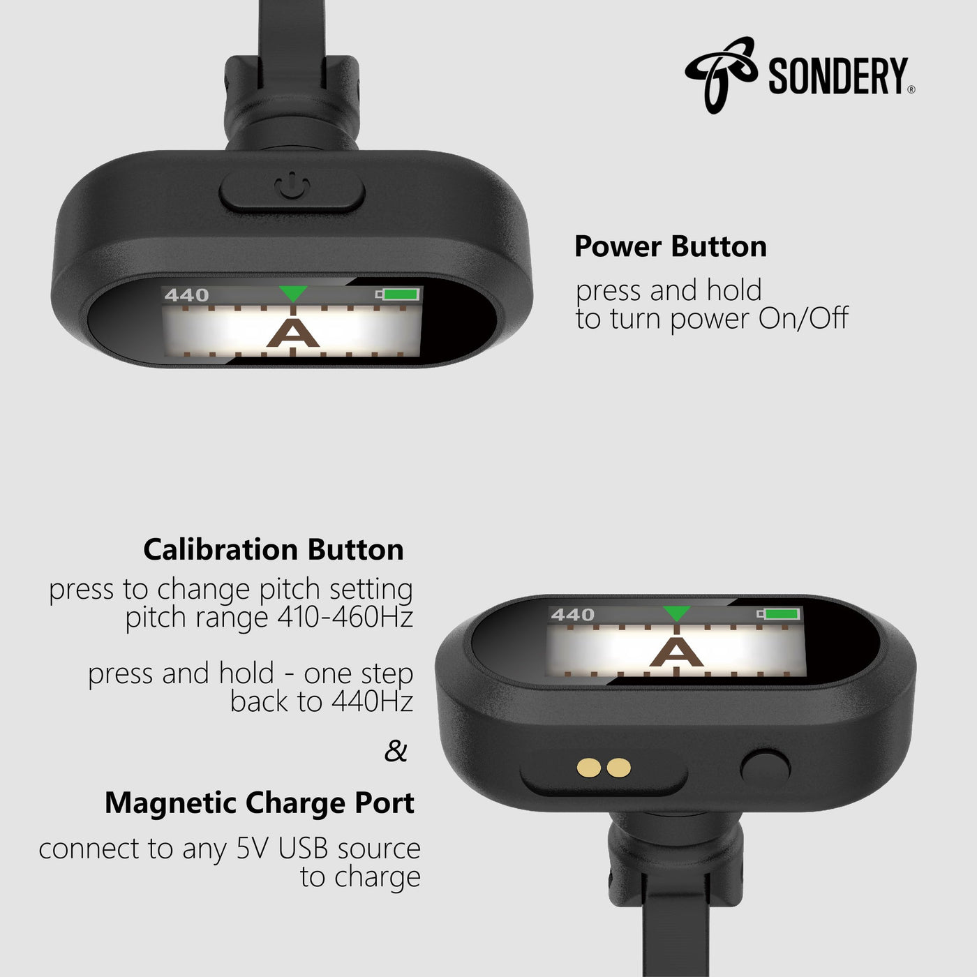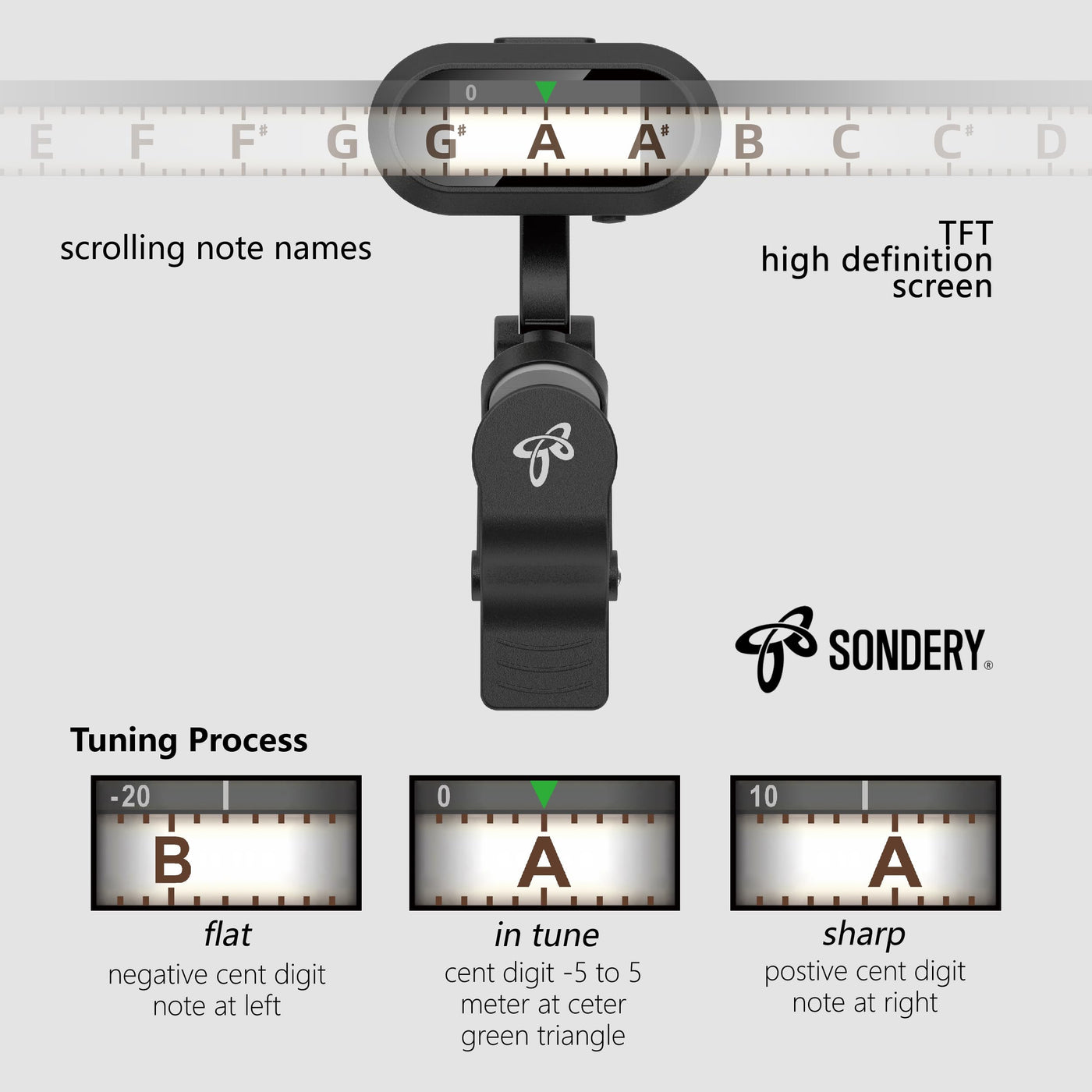 Sondery Guitar Ukulele Tuner Clip On Rechargeable, Easy To Read Simple Tft Screen Extremely Fast And Accurate Tuning, Headstock