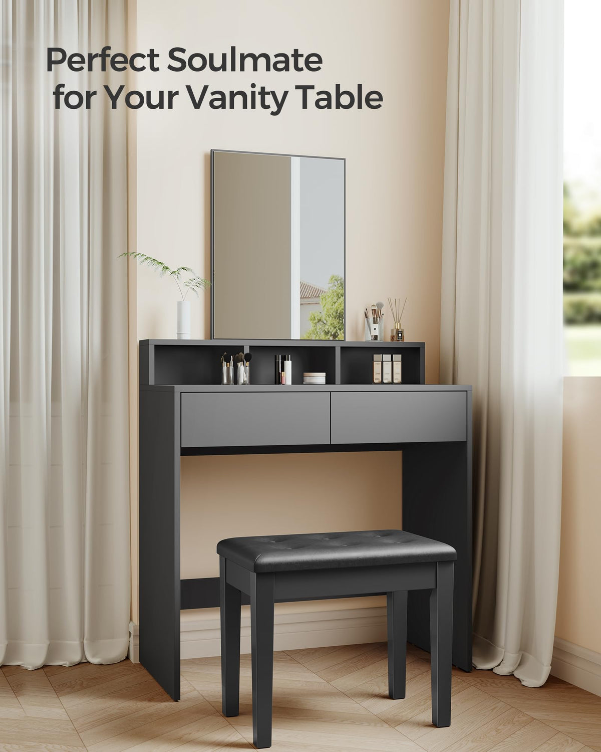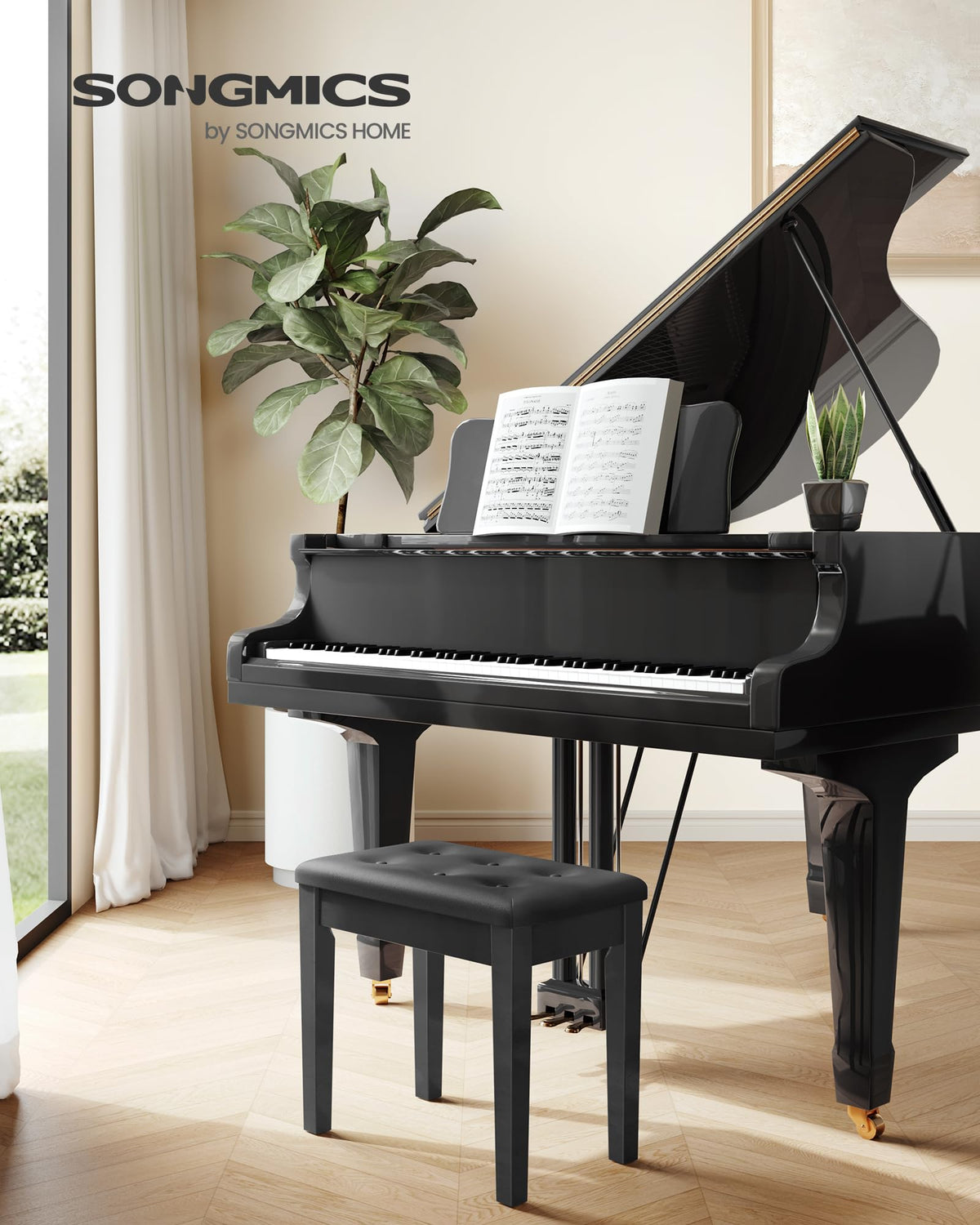 Songmics Piano Bench With Padded Cushion And Storage Compartment For Music Books, Vanity Stool, Tufted Wooden Piano Seat, 13.8 X