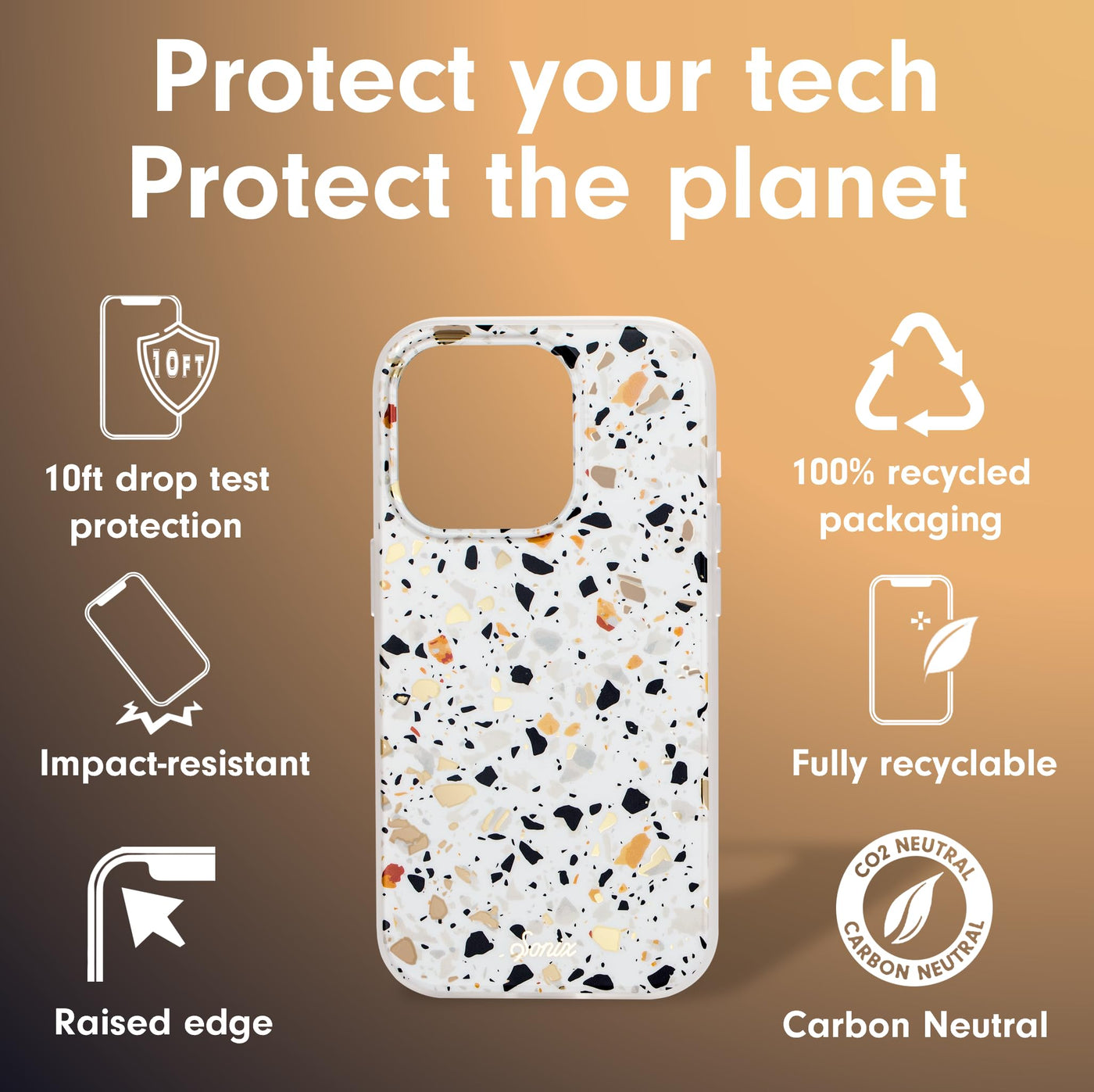 Compatible With Magsafe: Features Built-In Magnets Designed To Support Magnetic Wireless Charging | 10-Foot Drop Tested: Our Protective Case Features A Scratch-Resistant Coating, Raised Shock-Absorbent Sides, Grooved Impact-Resistant Corners, And A Raised Edge For Camera Protection | Features A Collection Of Natural Hued Bits On A White Base With Gold Foil Details | Protect Your Tech And The Planet: Our Phone Cases Are Made From 100% Thermoplastic Polyurethane (Tpu) And Packaged Using 100% Recycled, Recyclable Paper | Includes Sonix Lifetime Warranty