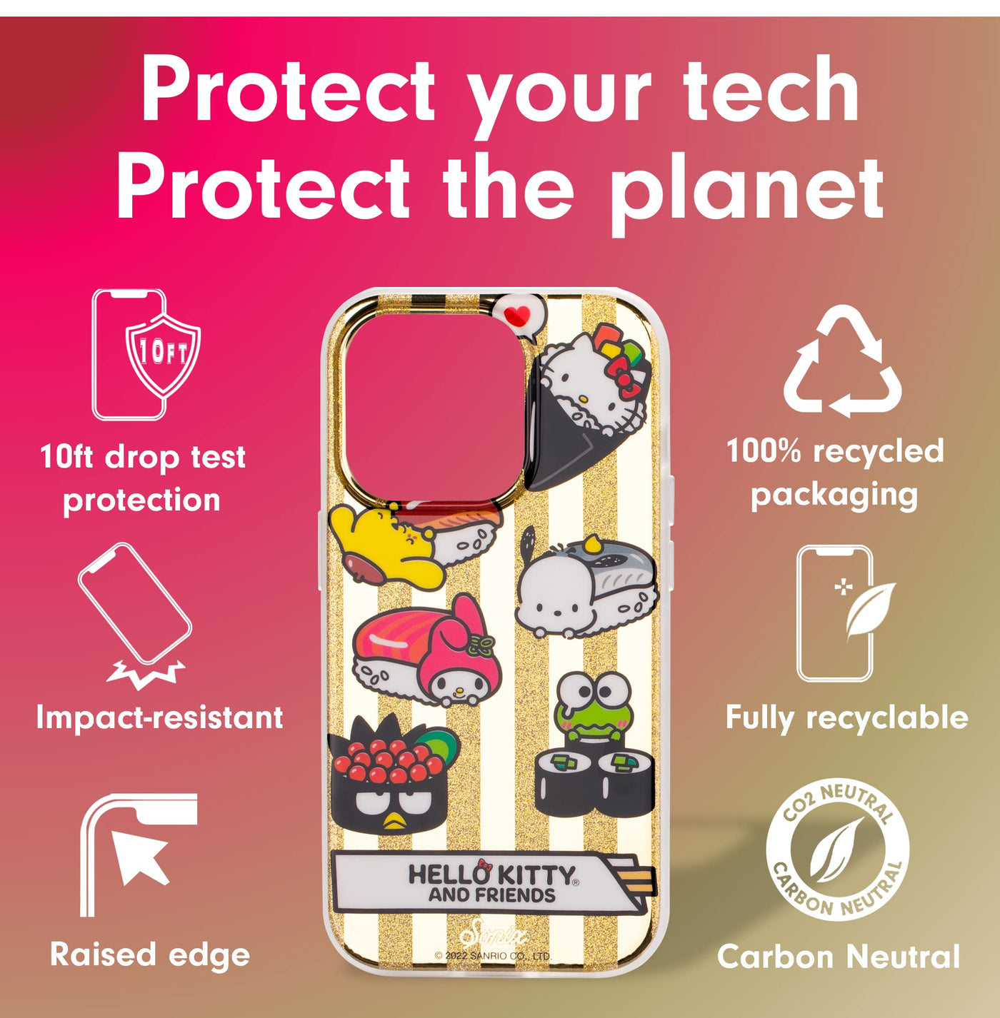 Q: What materials are used in the construction of this phone case?A: The Sonix x Sanrio Case is made from 100% thermoplastic polyurethane (TPU), ensuring it is both protective and environmentally friendly.