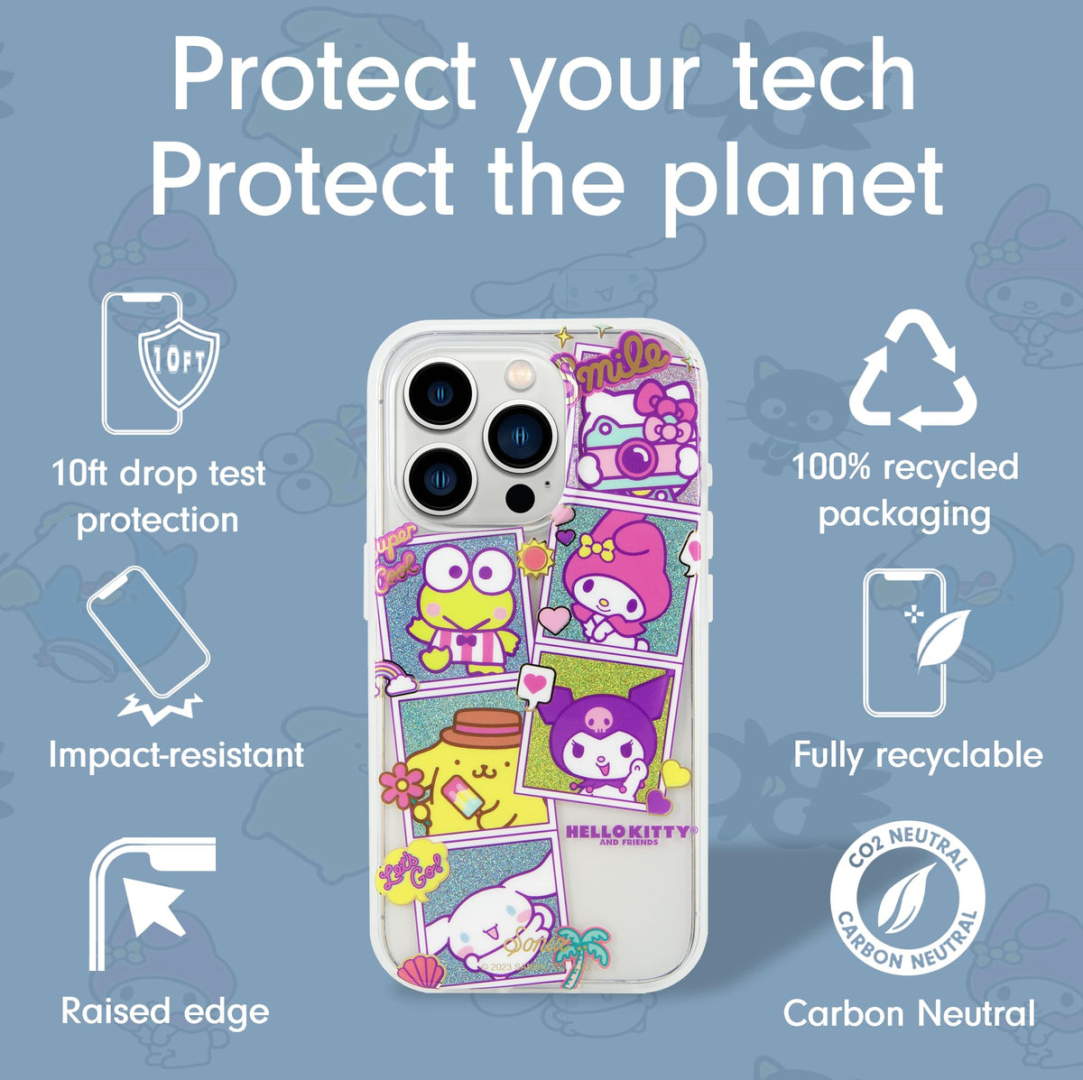 Q: How durable is the Sonix x Sanrio Case for iPhone 15 Pro Max?A: This case is 10-foot drop tested, featuring a scratch-resistant coating, shock-absorbent bumper, and impact-resistant corners to ensure maximum protection for your device.