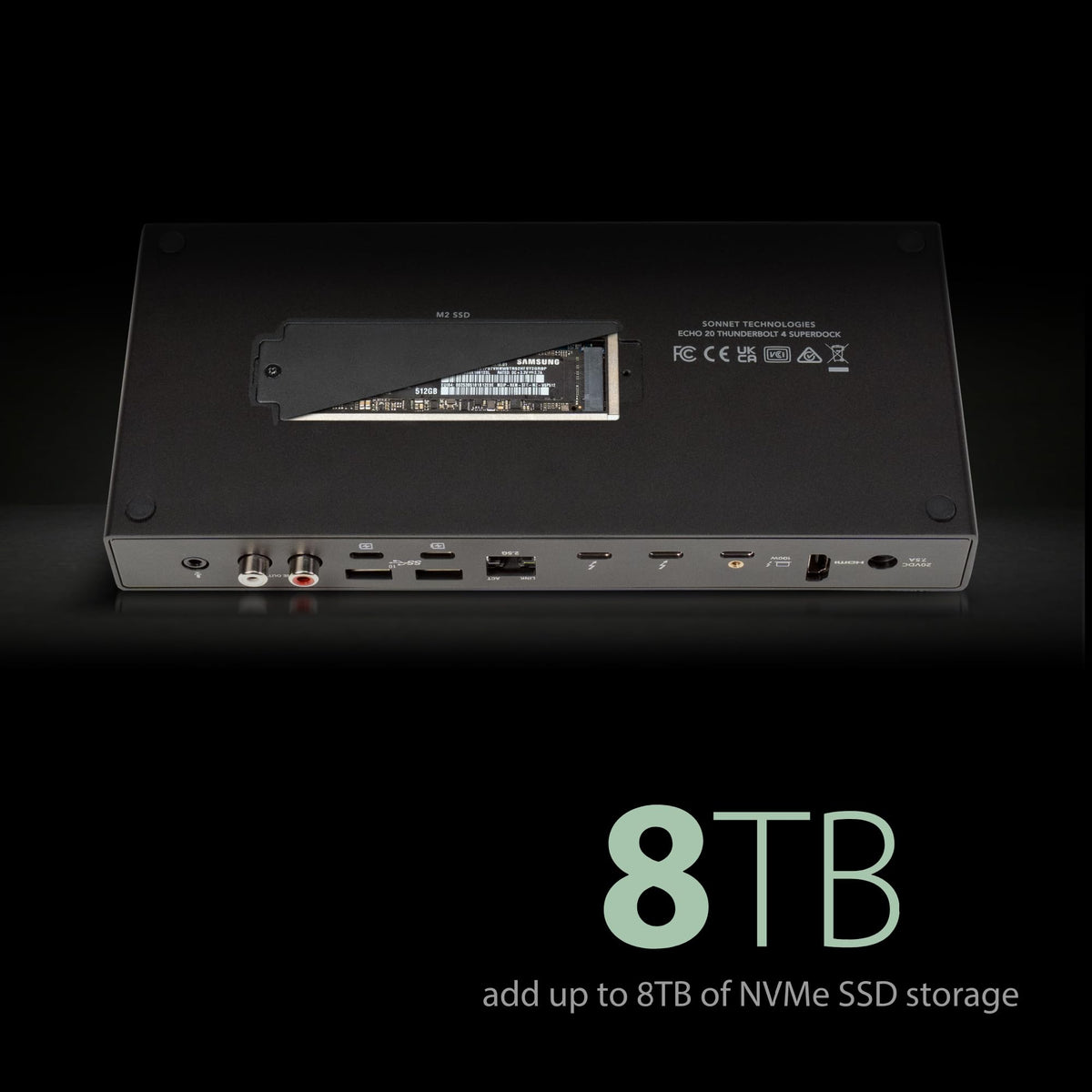 The Echo 20 Thunderbolt 4 Superdock Is A Universal Thunderbolt 4 Dock With Three Thunderbolt 4 Ports, M.2 Ssd Slot, Hdmi 2.1 Port, 2.5Gb Ethernet Port, Eight 10Gbps Usb Ports, And More! It Is Compatible With Apple M Series Macs; Thunderbolt 3 Intel Macs; Thunderbolt 3 And 4 Windows Computers; Thunderbolt 4/Usb4 Chromebook; And M Series Ipad Pro. It Supports For 4K, 5K, 6K And 8K @60Hz Displays And Has A Built-In Hdmi Port. It Provides 100W Of Power To Your Laptop. Offers A M.2 Nvme Ssd Slot So You Can Add Up To 8Tb Of Storage Inside (Ssd Sold Separately With Data Transfer Speeds Up To 800Mb/S.