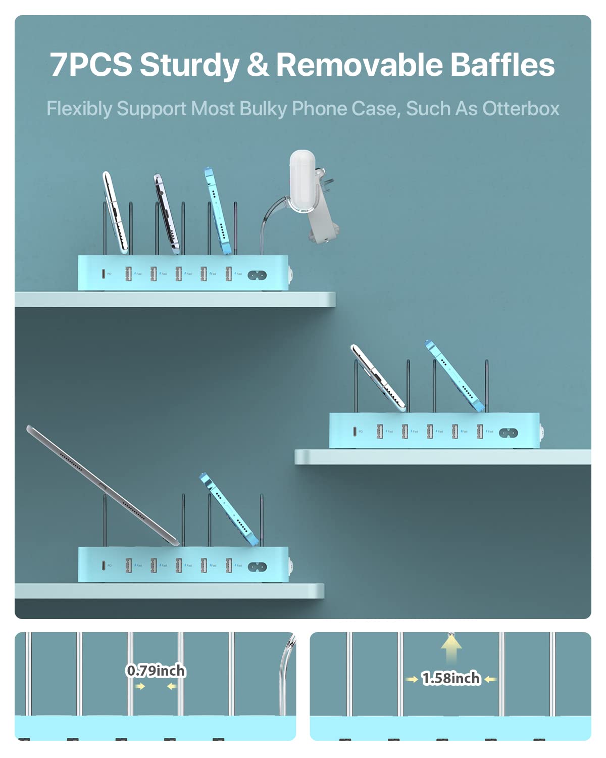 Soopii 60W 6 Port Pd Charging Station For Multiple Devices, 20W Pd Usb C Fast Charging For Lphone 14/13/12,6 Short Cables Includ