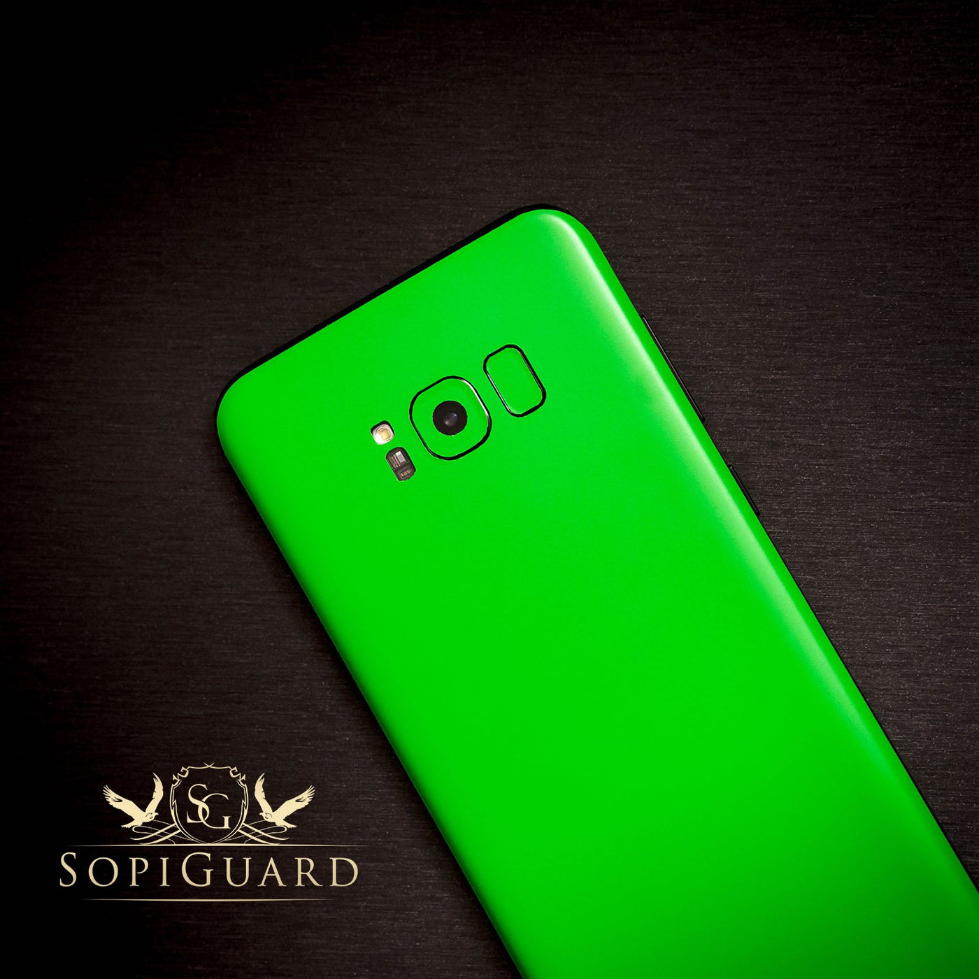 Q: What colors and styles are available for the SopiGuard Sticker?A: The SopiGuard Sticker is available in multiple colors and style choices, including options like a brushed aluminum look and vibrant neon green.