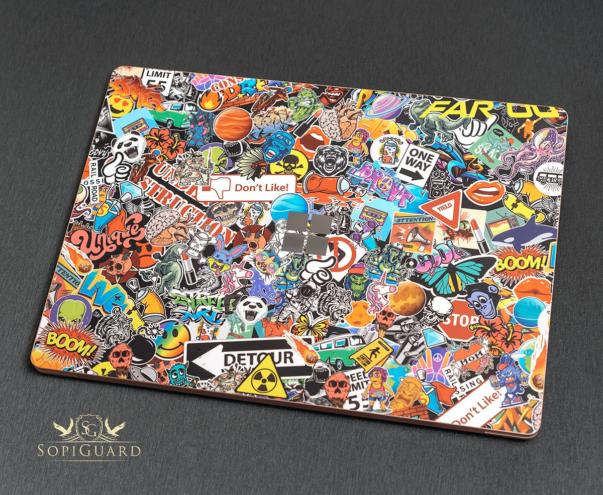 Q: What colors and styles are available for the SopiGuard Sticker?A: The SopiGuard Sticker is available in multiple colors and styles, including the vibrant 'Stickerbomb' design, allowing you to customize the look of your Surface Duo to your preference.