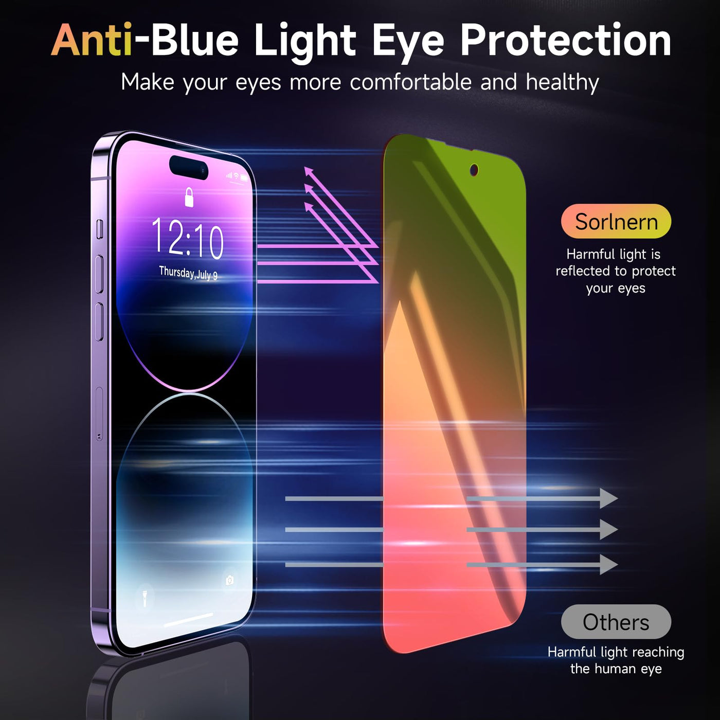 Q: Can the sorlnern screen protector reduce blue light exposure?A: Yes, this privacy screen protector is designed to block harmful blue light emitted from digital screens, which can help reduce the risk of eye strain, insomnia, and other related issues.