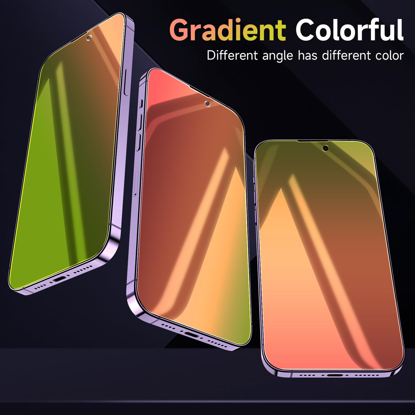 Q: What makes the sorlnern screen protector visually appealing?A: The unique gradient color design changes from iridescent red to green depending on the light and angle, offering a stylish alternative to traditional black privacy films while maintaining its privacy features.