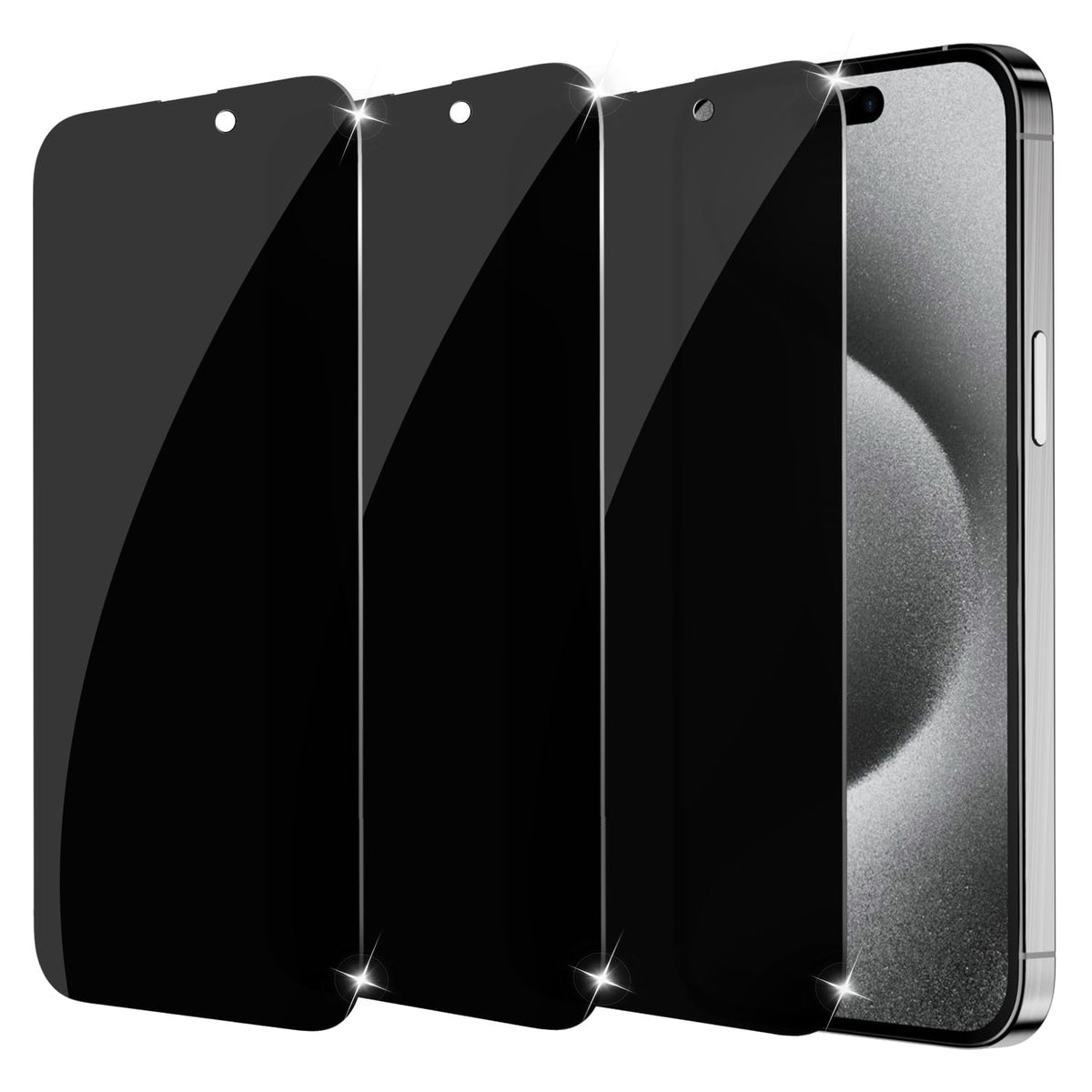 Sorlnern 3 Pack For Privacy Screen Protector For Iphone 15/15 Pro, Sensor Protection, Anti Spy Private Tempered Glass Film, Touc
