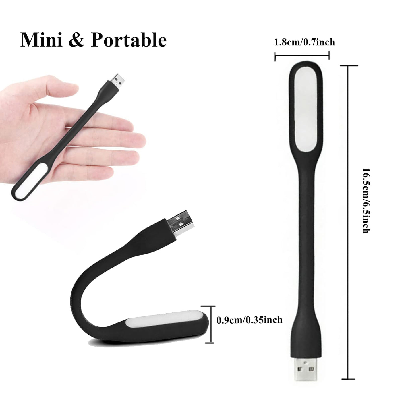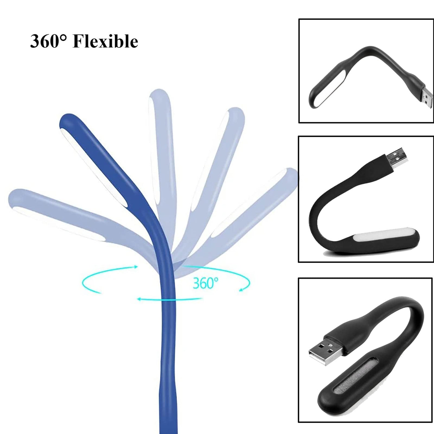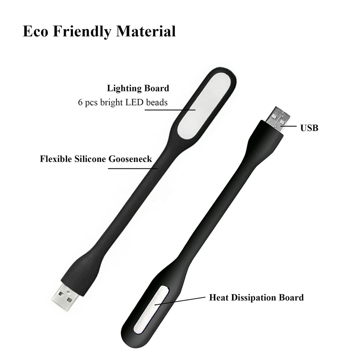 Soseelnee Mini Flexible Light, Portable Usb Led Reading Night Lamp For Pc Laptop Computer Notebook Power Bank 2 Pack (Black)