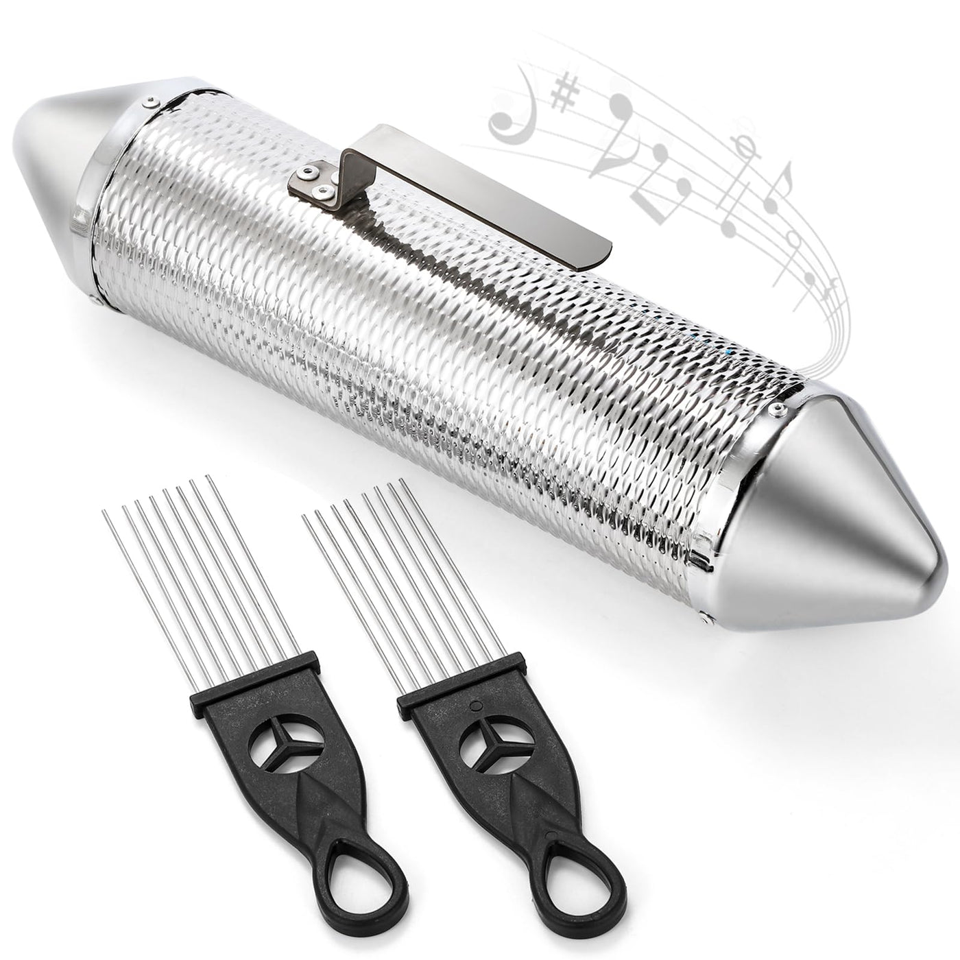 Package: Include Guiro X 1, 8 Tine Metal Scraper X 2, Which Will Help You To Get A Better Experience When Playing This Guiro. Size: 15 X 3 Inch | Smooth Surface: Soujoy Guiro Shaker Is Made Of Stainless Steel, Good Workmanship, That Recreates The Sound Of The Traditional Instrument | Easy To Use: The Guiro Is Lightweight And Compact, Easy To Carry Around Wherever You Go. It Has A Side Handle, Can Provide Comfortable And Functional Way In Any Position, It Is Simple To Use And Easy To Play | Excellent Sound Quality: This Guiro Instrument Has A Rustling Sound That Is Produced By Inside Metal Balls Hitting Its Stainless Steel Body, And Designed With Hollow Texture By Evenly Divided, And Two Tapered Ends Design, Will Create Authentic, Raspy Sound With Bright Overtones | Multi Application: The Guiro Shaker Is Suitable For Performance, Like Band Performances, Live Performances, Parties, Concerts And Other Occasions. It Is A Perfect Gift For Family, Friends, And Even Co-Workers