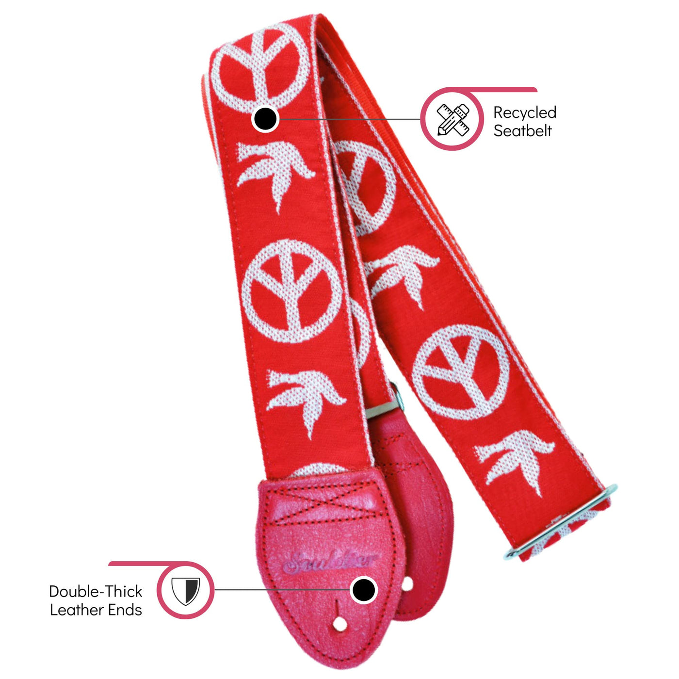 Souldier Gs1026Rd02Rd Handmade Seatbelt Guitar Strap For Bass, Electric Or Acoustic Guitar, 2 Inches Wide And Adjustable Lengt