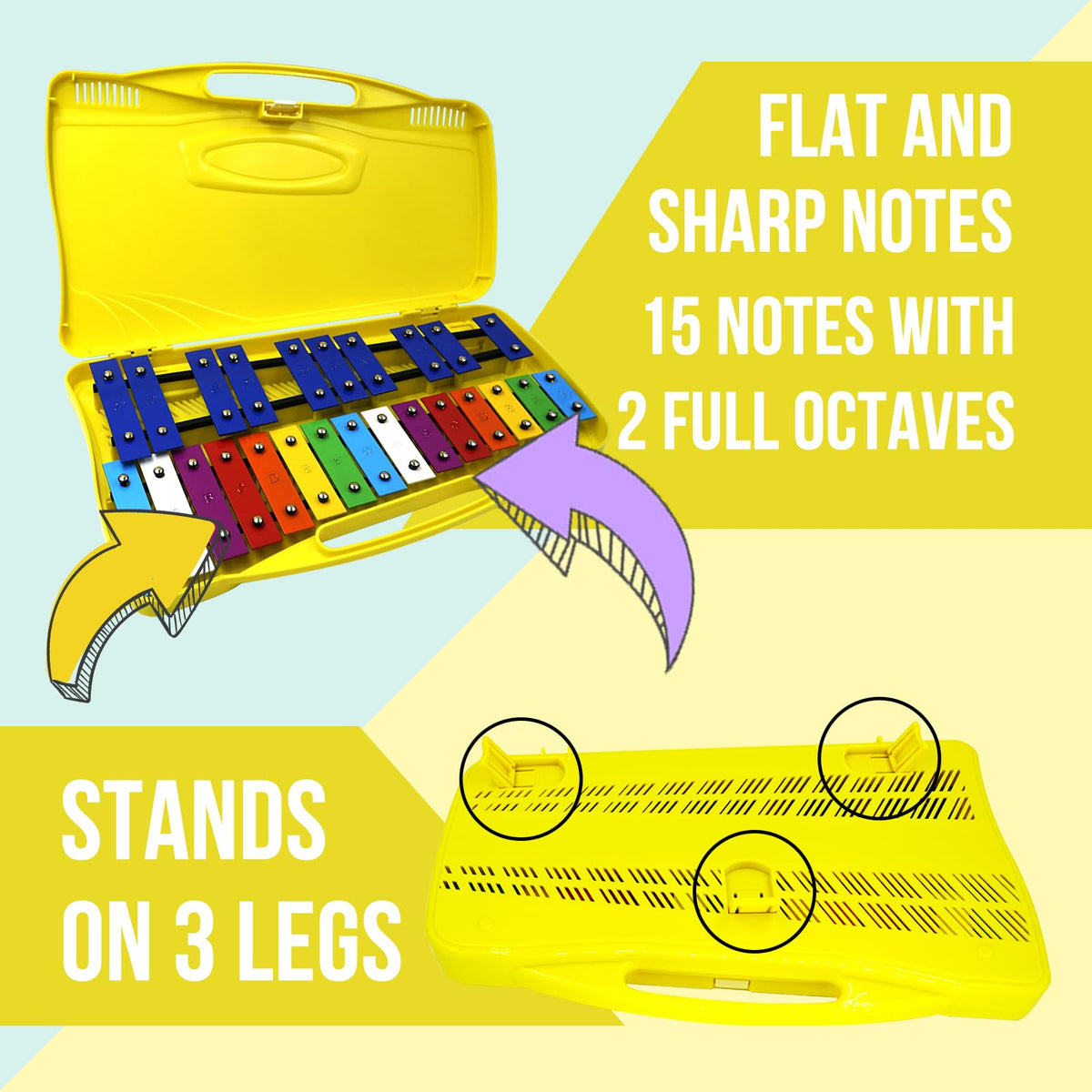 Soulmate Xylophone Glockenspiel 25 Notes Xylophone For Kids Professional Xylophone Instrument Music Teaching, Gifts (Yellow)