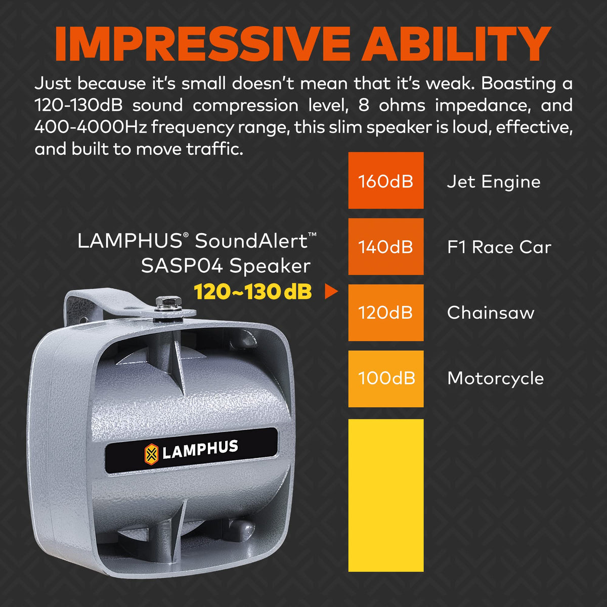 Mounting Anything To The Front Of Your Vehicle Means Subjecting It To Damaging Road Debris, Rain, Snow, And Just About Anything Else You Can Think Of. You Need A Speaker That Can Hold Its Own. The Lamphus 100W Compact Speaker, With Its Heavy-Duty Steel Body, Ip66 Waterproof Rating, And 120 - 130 Db Sound Output, Is Powerful Enough To Clear A Street And Tough Enough To Handle Even The Worst Abuse.