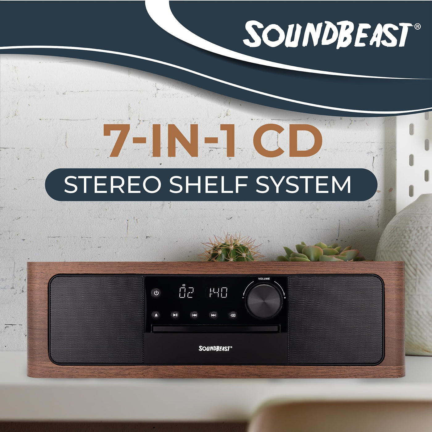 Soundbeast Stereo Shelf System With Cd Player, Bluetooth, Fm Radio, Usb Playback, Aux In, Optical In, Alarm Clock, & Remote Cont