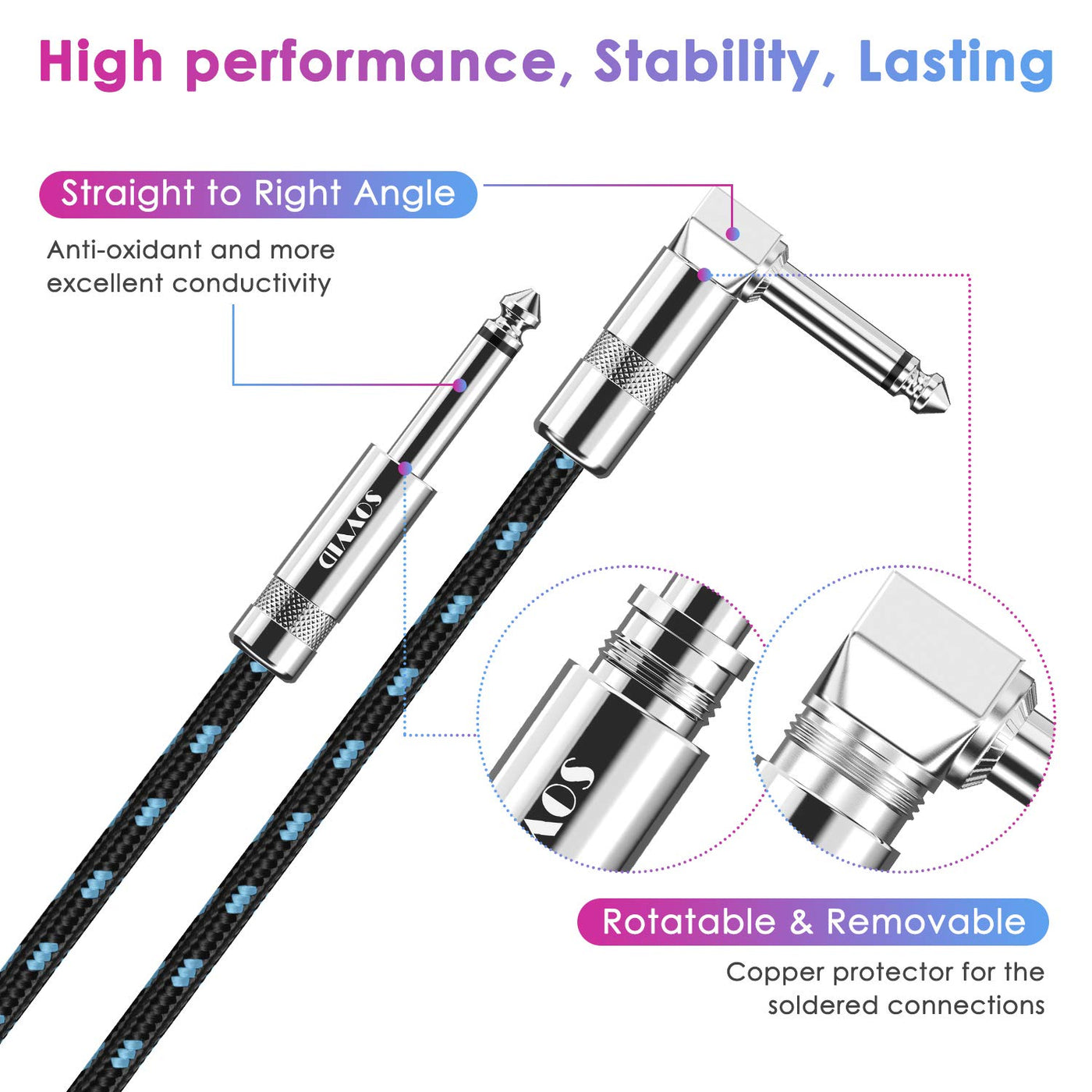 Sovvid Guitar Cable 10Ft 2 Pack Instrument Cable Guitar Cord Electric Guitar Cable Guitar Amp Cord For Bass Guitar Keyboard 1/4 Inch Cable Right Angle Black Blue
