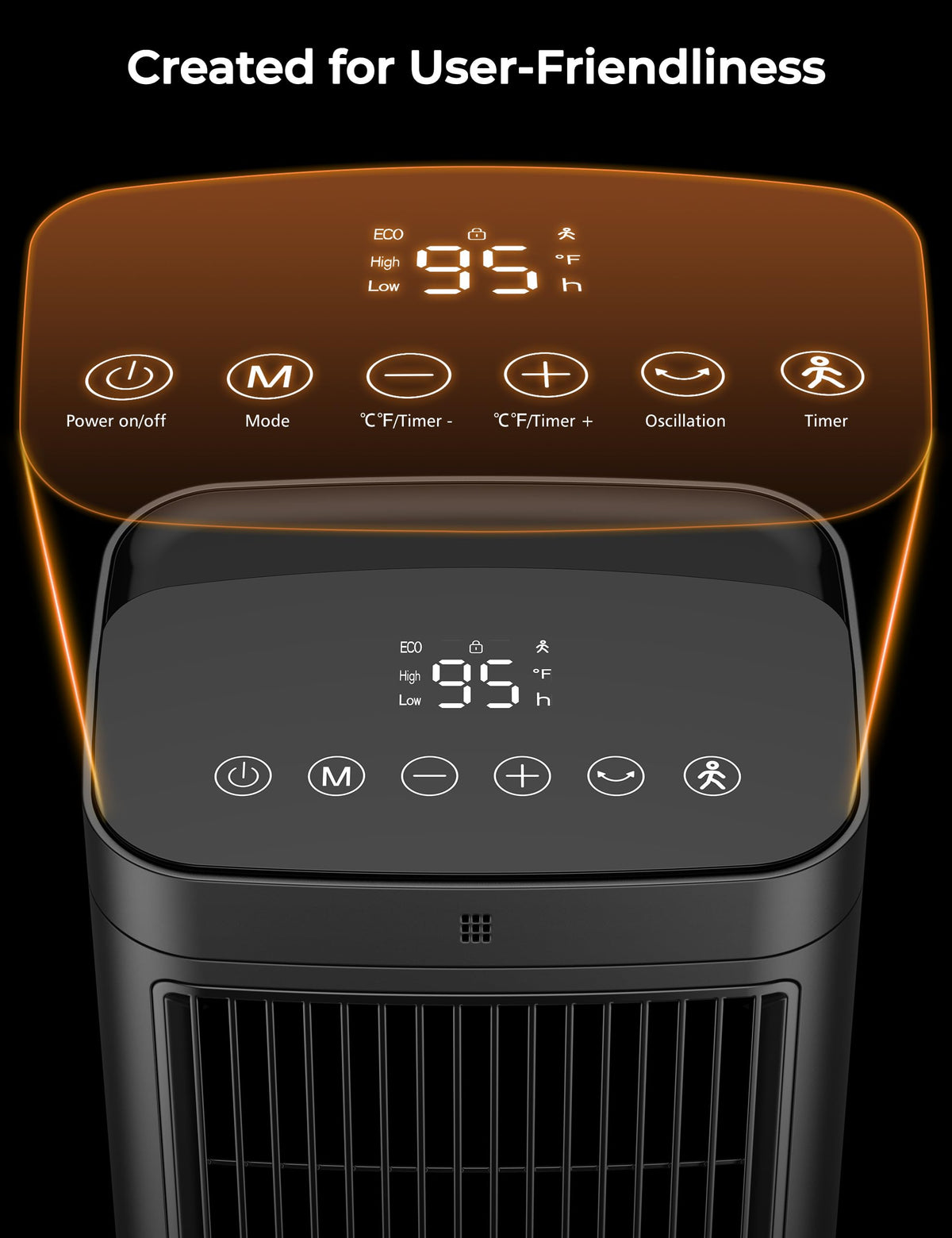 Q: Can I control the Space Heater remotely?A: Yes, the heater comes with a remote control and an LED touch-screen interface, allowing you to easily adjust the temperature, timer, and heating modes from a distance.
