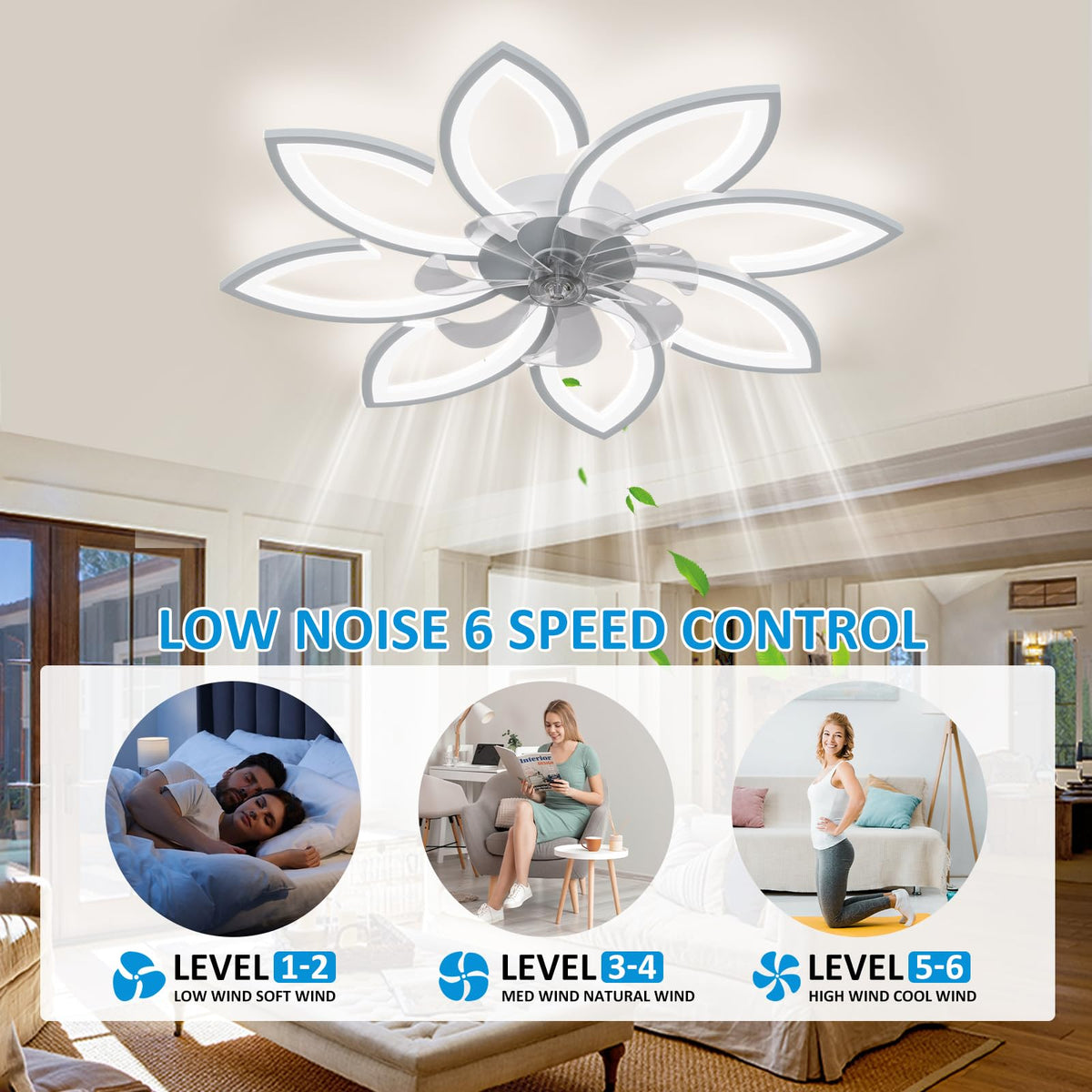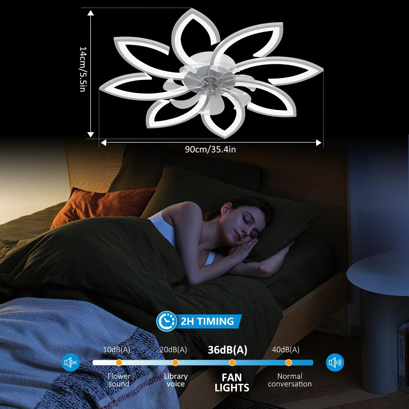 Speed Adjustable Fan: < /B > < Br >;< Br >;< Br >;Improves Indoor Air Circulation, Rapidly Cools Down The Room, And Comes With A Convenient Timer Function (1H/2H/4H/8H). Easy To Install, The Bladeless Ceiling Fan Can Be Mounted In Any Desired Location, And The Bedroom Lights For Ceiling Includes A Detailed User Manual And Installation Video Qr Code. Suitable For 85-265 Voltage.< Br >;< Br >;< B >3.Modern Reversible Ceiling Fan With Lights:< /B > < Br >;< Br >;< Br >;Two Rotation Modes, Low Profile Ceiling Fan Is Forward Rotation In Summer To Lower The Temperature To Bring Cool Breeze, Ceiling Fan Is Reverse Rotation In Winter To Increase Air Circulation For More Balanced Room Temperature.< Br >;< /B > < Br >;< Br >;< Br >;Low Profile Ceiling Fan Have 7 Blades Run Smoothly, Provides Strong Airflow, No Noise During Modern Ceiling Fan With Light Operation, 6-Speed Adjustable Wind Speed Ceiling Fans (Low 1-2, Medium 3-4, High 5-6), Accelerate Indoor Air Circulation, Quickly Cool Down And Dissipate Heat, Timing (1H/2H/4H/8H). Measures 35 X35 X 5.5 Inch.< Br >;< Br >;< B >5.Dimmable Led Bladeless Ceiling Fan Light: < /B > < Br >;< Br >;< Br >;This Ceiling Fans With Lights Can Adjust The Color Temperature Of The Light, Modern Ceiling Fan Can Be From Bright To Dim (6000- 3000K). You Can Adjust The Most Comfortable Light Color To Meet Your Needs.