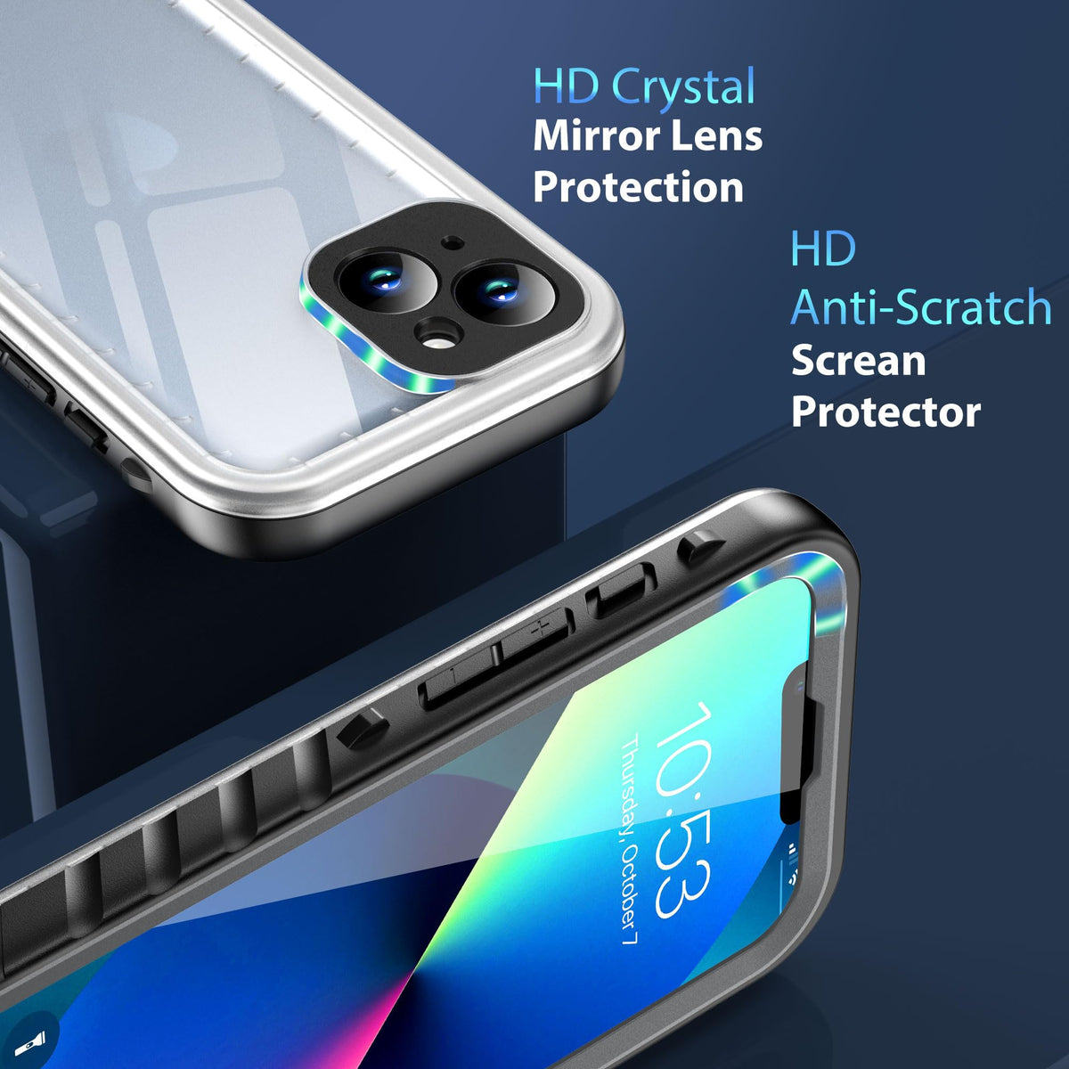 Q: Can I use my phone's camera while it's in the case?A: Absolutely! The built-in clear screen protector allows you to use your iPhone 13's camera for underwater photography without compromising quality.