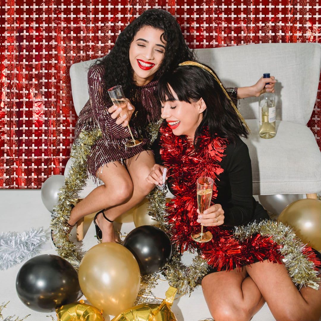 Square Tinsel Curtain Party Backdrop 10Pcs Glitter Foil Fringe Curtain Party Decor Red Photo Booth Backdrop Streamers For Hall