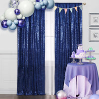 Squarepie Sequin Backdrop Non Transparent Background Sparkly Curtain For Wedding Party 2Ft X 8Ft Navy Blue 2Pcs