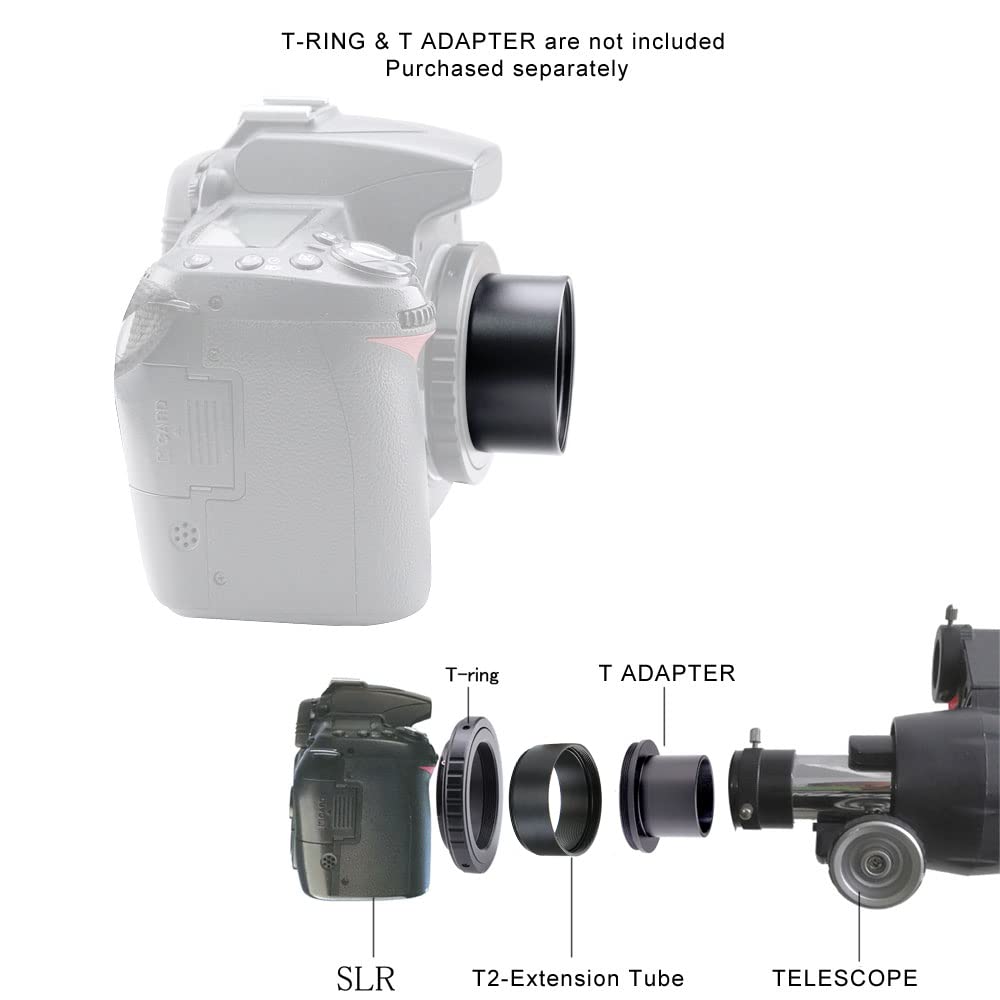 Q: How can I effectively use multiple extension tubes together?A: You can combine 1 to 7 extension tubes together to achieve the desired spacing for your astrophotography needs. This flexibility allows you to select the combination that best suits your focal length requirements, enhancing your photographic capabilities.