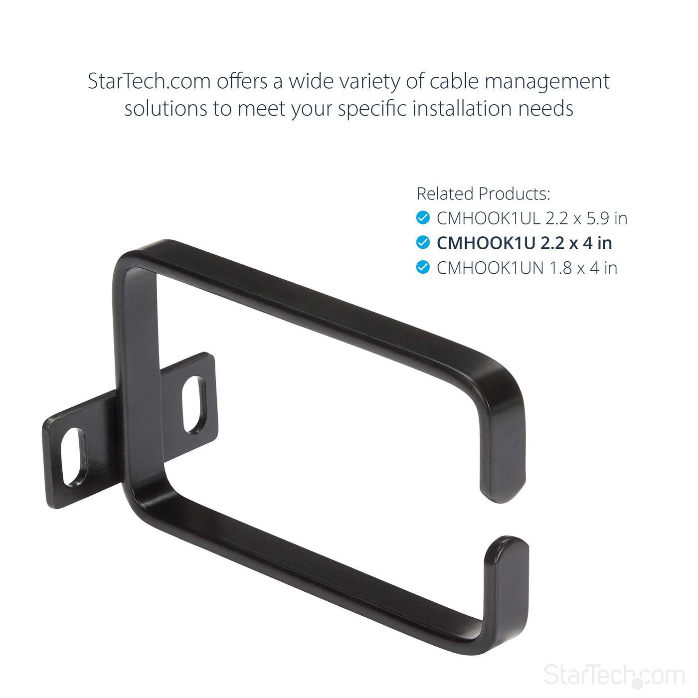 22 X 39In (57 X 10Cm) Cable Management D-Ring 1U Bracket Can Be Mounted To Any Standard Rack Post Taa Compliant For Gsa Schedule Purchases Flexible Opening Sturdy Steel Construction The Cmhook1U Vertical Cable Management D-Ring Lets You Add A 1U Metal Cable Hook To Your Server Rack Or Cabinet To Provide An Organized Channel For Your Cables This Taa Compliant Product Adheres To The Requirements Of The Us Federal Trade Agreements Act (Taa), Allowing Government Gsa Schedule Purchases Constructed Of High-Quality Steel, The Cable D-Ring Measures 22 X 39In (57 X 10Cm) And Offers A Flexible Opening For Easy Insertion Of Bundled Cables Providing Strain Relief For Attached Cables, Multiple Cable Rings Can Be Attached To Your Rack Where You Need Them For A Versatile Cable Management Solution Please See Our Other Cable Management D-Ring Products For Different Size Configurations: 1U Cable Management D-Ring - 22 X 59In (57 X 15Cm) - Cmhook1Ul 1U Cable Management D-Ring - 18 X 39In (45 X 10Cm) - Cmhook1Un Backed By A Startechcom 2-Year Warranty Use With Server Racks And Cabinets, Structured Wiring Closets And Network Distribution Cabling To Keep Cables Neat And Tidy Route Cables Neatly Through Your Rack With An Easy To Install Cable Management Ring Increase The Longevity Of Your Server And Networking Equipment Interfaces By Providing Cable Strain Relief Specifications Warranty Information Warranty 2 Years Hardware Orientation Vertical U Height 1U Industry Standards Eia Rs310-D Packaging Information Package Height 18 In 46 Mm] Package Length 89 In 225 Cm] Shipping (Package) Weight 29 Oz 83 G] Package Width 49 In 125 Cm] Package Quantity 1 Physical Characteristics Weight Of Product 28 Oz 78 G] Color Black Material Steel Internal Width 20 In 51 Cm] Internal Depth 36 In 93 Cm] Product Length 40 In 101 Cm] Product Width 22 In 57 Mm] Product Height 18 In 45 Cm] Whats In The Box 1 - Included In Package 22X39In (57X10Cm) Cable Management Hook