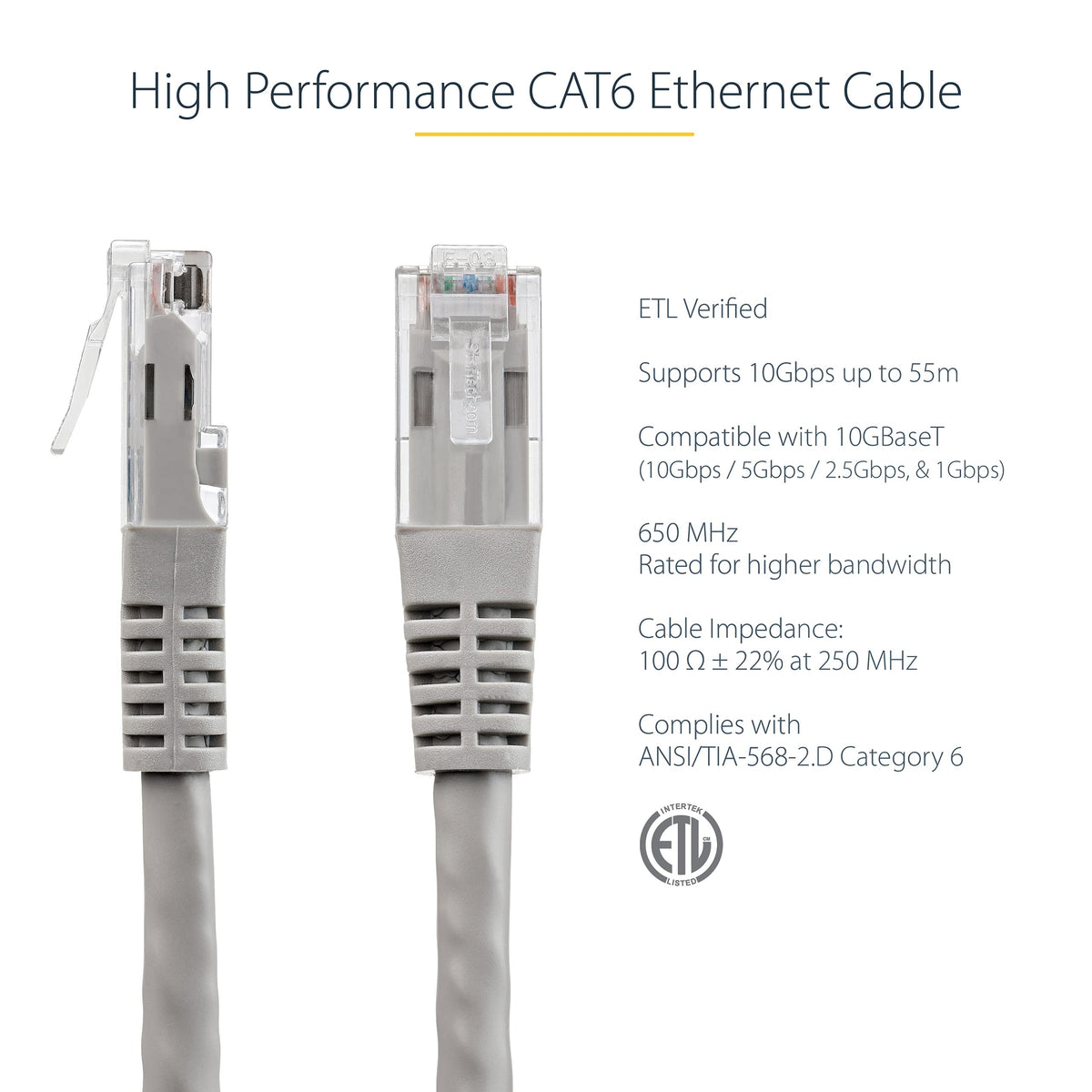 Startech C6Patch25Gr 25Ft Cat-6 Gray Molded Rj45 Utp Gigabit Patch Cable Molded Strain Relief Prevents The Cable From Being Bent At Sharp Angles At The Rj45 Connector, To Minimize The Stress At The Plug Termination Point. Molded Rj45 Connectors. Carefully Constructed And Tested, To Keep Near End Crosstalk (Next) Well Within Acceptable Limits. Colored Hoods For Departmental Color Coding. Constructed With Top Quality Components. High Quality 24 Awg Copper Wire. Backed By Startech Lifetime Warranty.