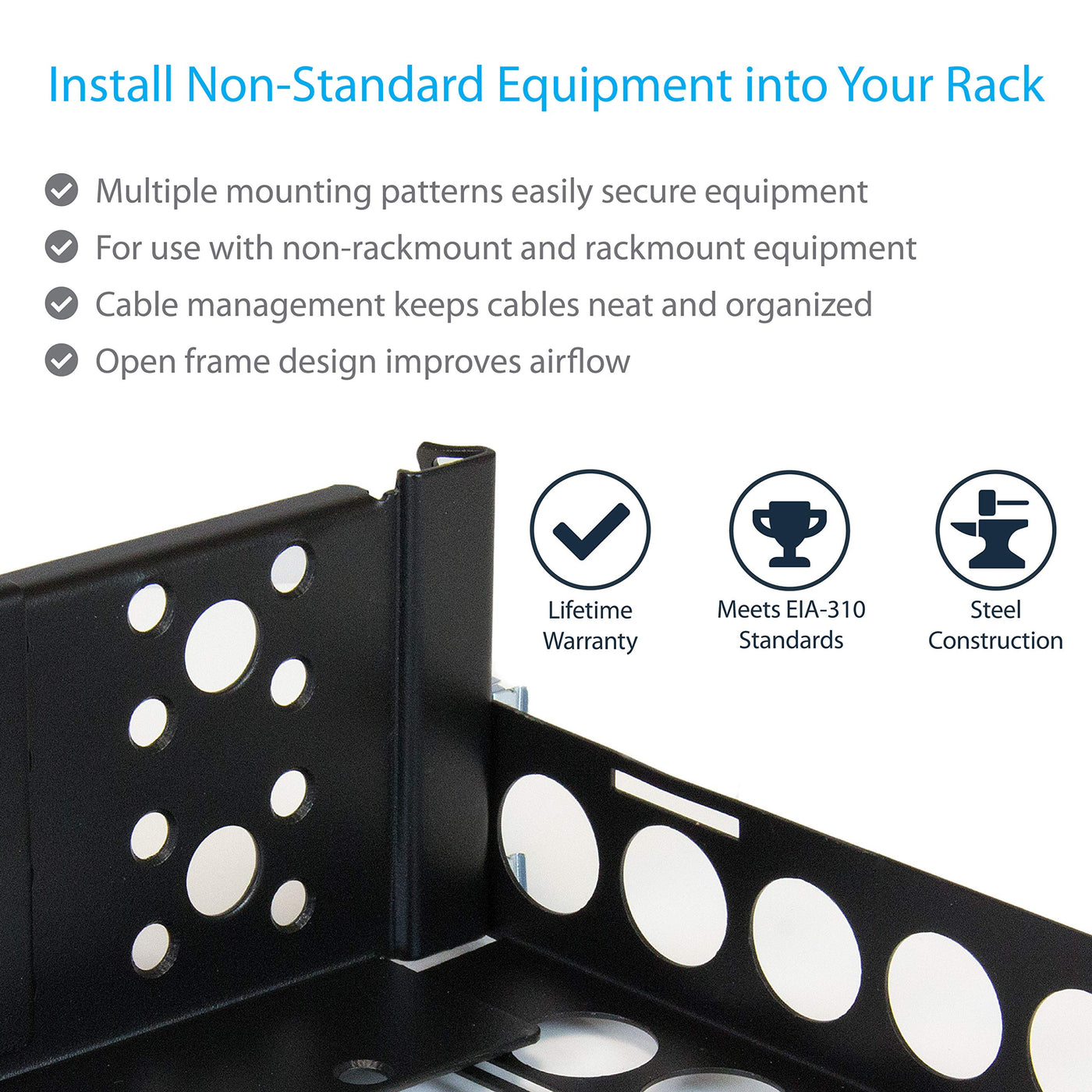 These 2U Server-Rack Rails Let You Mount Non-Rackmount Equipment Such As Desktop Servers, Networking Equipment Or Kvm Switches, Into Your 19 Server Rack Without Sacrificing An Additional 1U Of Rack Space, Like You Would With A Traditional Shelf The Rack Rails Are Also A Great Solution For Mounting Equipment With Damaged Rails Or Discontinued Oem Equipment Such As Della, Ibma, Hpa Or Apple Servers That No Longer Have Rack Rails Available This Taa Compliant Product Adheres To The Requirements Of The Us Federal Trade Agreements Act (Taa), Allowing Government Gsa Schedule Purchases Turn Non-Rackmount Equipment Into 2U Rackmount Hardware These Rack Rails Add Rackmount Functionality To Your Non-Rackmount Gear, By Cradling Your Equipment In An Open Frame Supported By Three Sturdy Crossbars You Can Mount Your Non-Rackmount Equipment By Mounting The Rails To Your Server Rack And Placing Your Equipment On The Undercarriage For Equipment That Already Features Mounting Holes, The Rails Also Feature Multiple Mounting Patterns To Secure Your Equipment, For An Added Level Of Security Universal Design Mounts To Almost Any 19 Server Rack Adhering To The Eia-310 Standard For 19 Rackmount Equipment, These Mounting Rails Are Universally Compatible With 19 Server Racks The Depth Is Adjustable For A Variety Of Rack Sizes And Configurations Plus, There Is A Rear Cable Management Panel Thats Removable For Additional Customization Maximum Durability To Ensure Your Equipment Is Secure, These Mounting Rails Feature Cold-Rolled Steel Construction The Durable Design Can Support A Weight Load Of Up To 100 Lb (45 Kg) The Unirails2U Is Backed By A Lifetime Startechcom Warranty With Free Technical Support