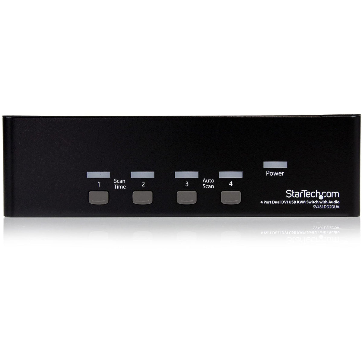 Startech.Com 4 Port Dual Kvm Switch With Audio For Dvi Computers Built In Usb Hub (Sv431Dd2Dua), Black
