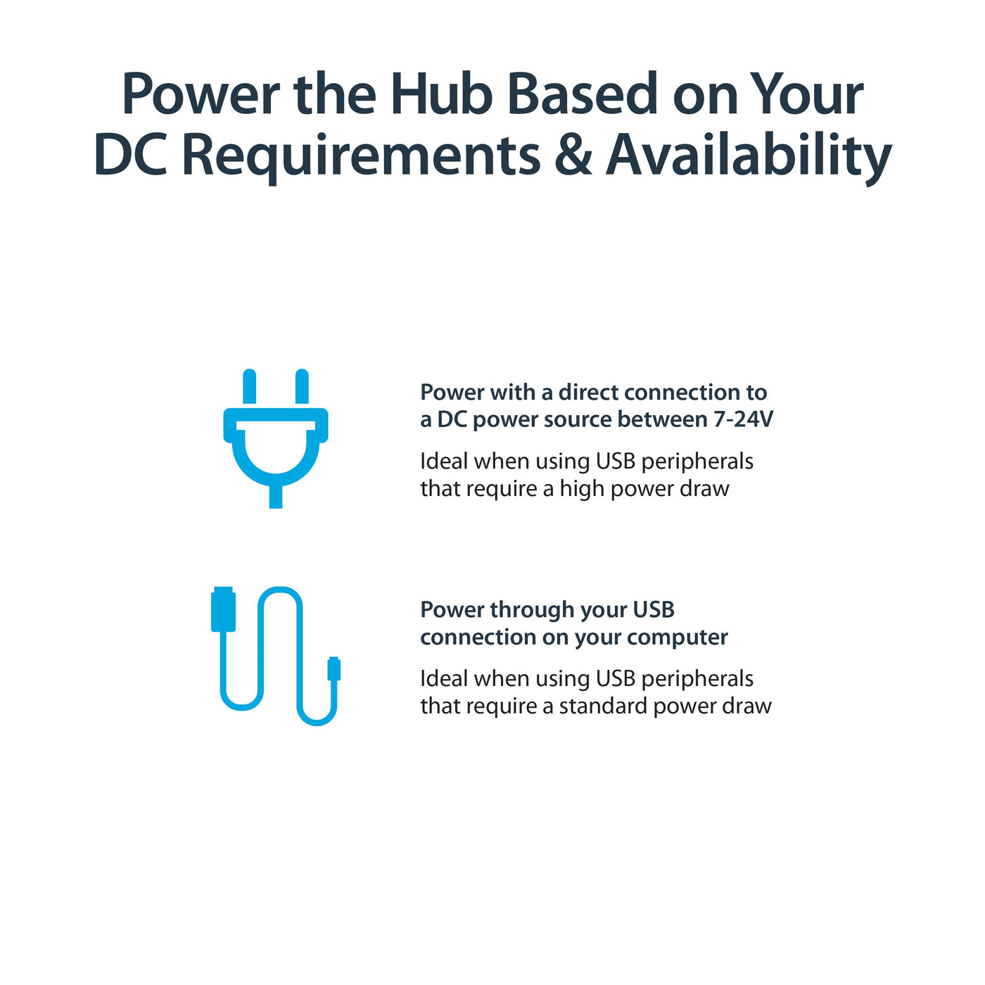 Q: What is the maximum power input for the StarTech.com 4-Port USB 2.0 Hub?A: The StarTech.com 4-Port USB 2.0 Hub supports a wide-range power input of 7-24V DC via a terminal block, allowing you to power the hub based on your specific input capabilities.