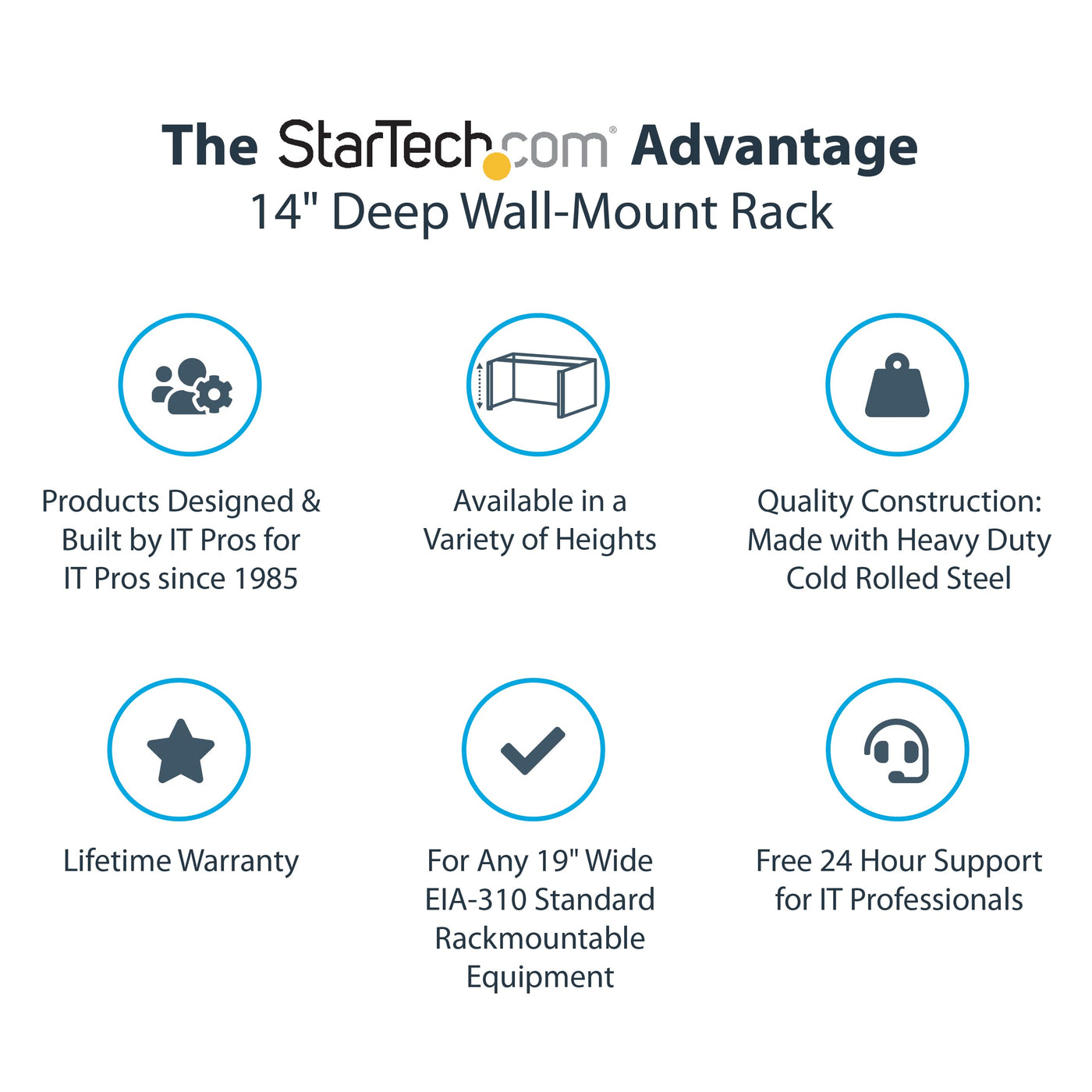 Startech.Com 4U Wall Mount Rack, 13.78In Deep, 19 Inch Wall Mount Network Rack, Wall Mounting Patch Panel Bracket For Switch/It Equipment - 4U Wall Mount Rack For Networking Equipment - 19In Wallmount Patch Panel Bracket - Mount Depth 13.78In - 44Lb Capacity - Incl Hardware For Wall Mounting (Mount Holes 16In Apart) And Equipment Install - Cold Rolled Steel For Durability - Lifetime Warranty