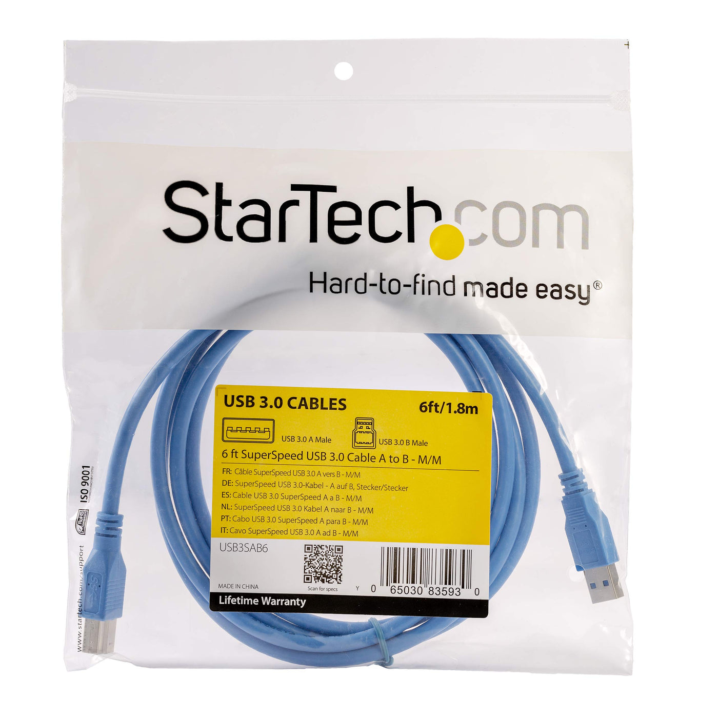 Startech.Com 6 Ft / 2M Superspeed Usb 3.0 Cable A To B 1 Usb 3.0 A (Male) To 1 Usb 3.0 B (Male) (Usb3Sab6), Blue
