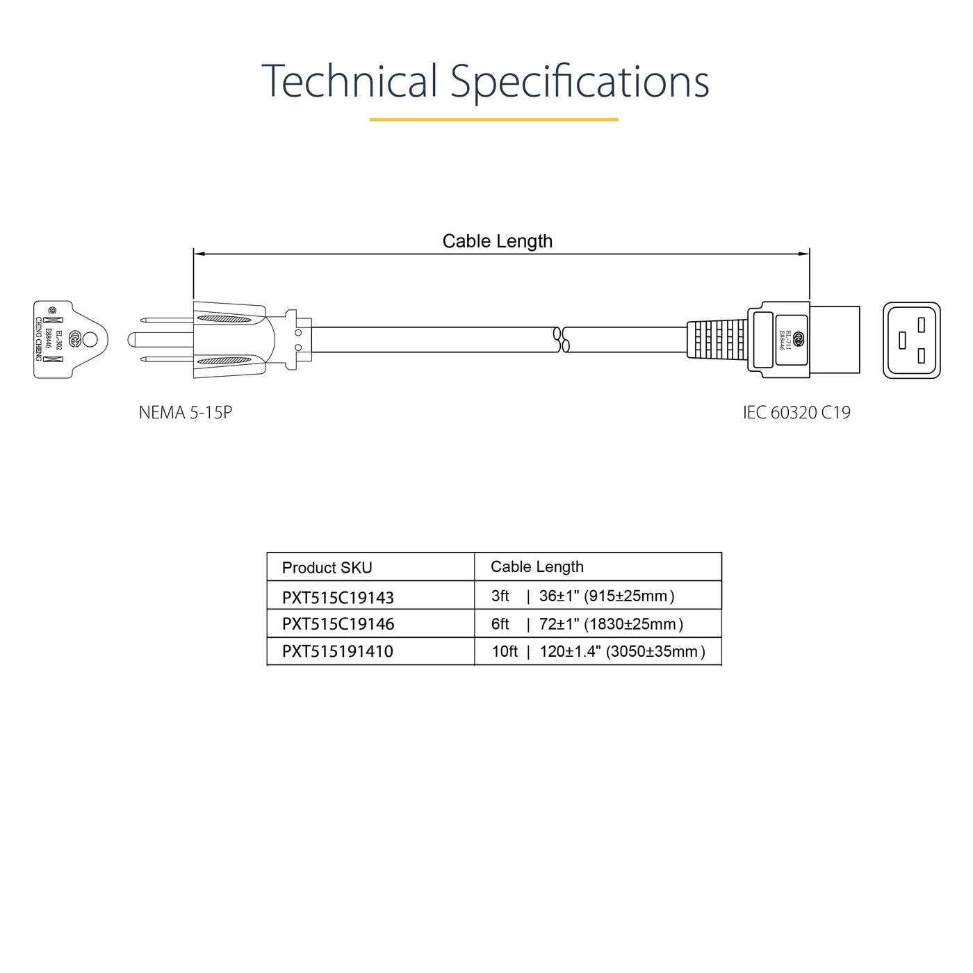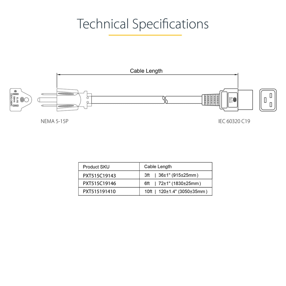 Startech 6 Ft Heavy Duty 14 Awg Computer Power Cord- Nema 5-15P To C19 The Startech 6 Nema 5-15P To C19 Computer Power Cord In Black, Helps To Make High-Power Connections For Your Computer And Server Room Devices For Router, Pdu, Network Switch, Computer, Server Black 6